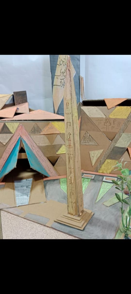 وقال لليوم السابع، إن الأعمال صممت من الورق المقوى لتعبر عن التاريخ المصري القديم وتواكب الأحداث الوطنية، وسبق للمدرسة تنفيذ مجسمات عن انتصارات أكتوبر، وحفر قناة السويس، ومشروعات الجمهورية الجديدة، تجسيداً لحب الوطن والانتماء له.