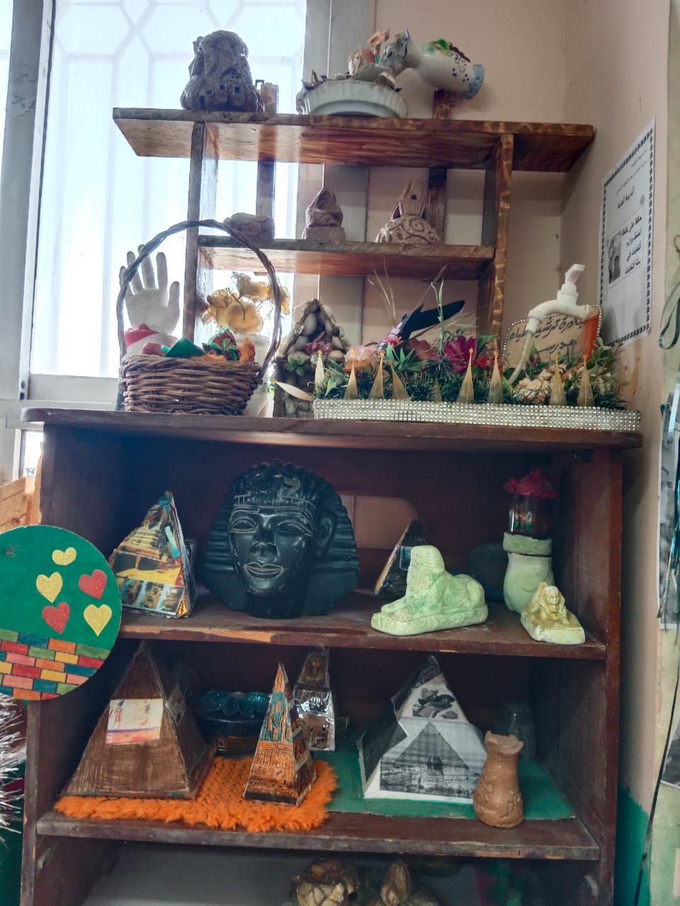 وشارك طلاب المدرسة بفاعلية في تنفيذ هذه الأعمال ضمن المبادرات المدرسية المختلفة، كما شملت المعروضات تصاميم للفن الشعبي المصري برموزه وعناصره الجمالية التي تعكس ثراء وعمق التراث المصري.