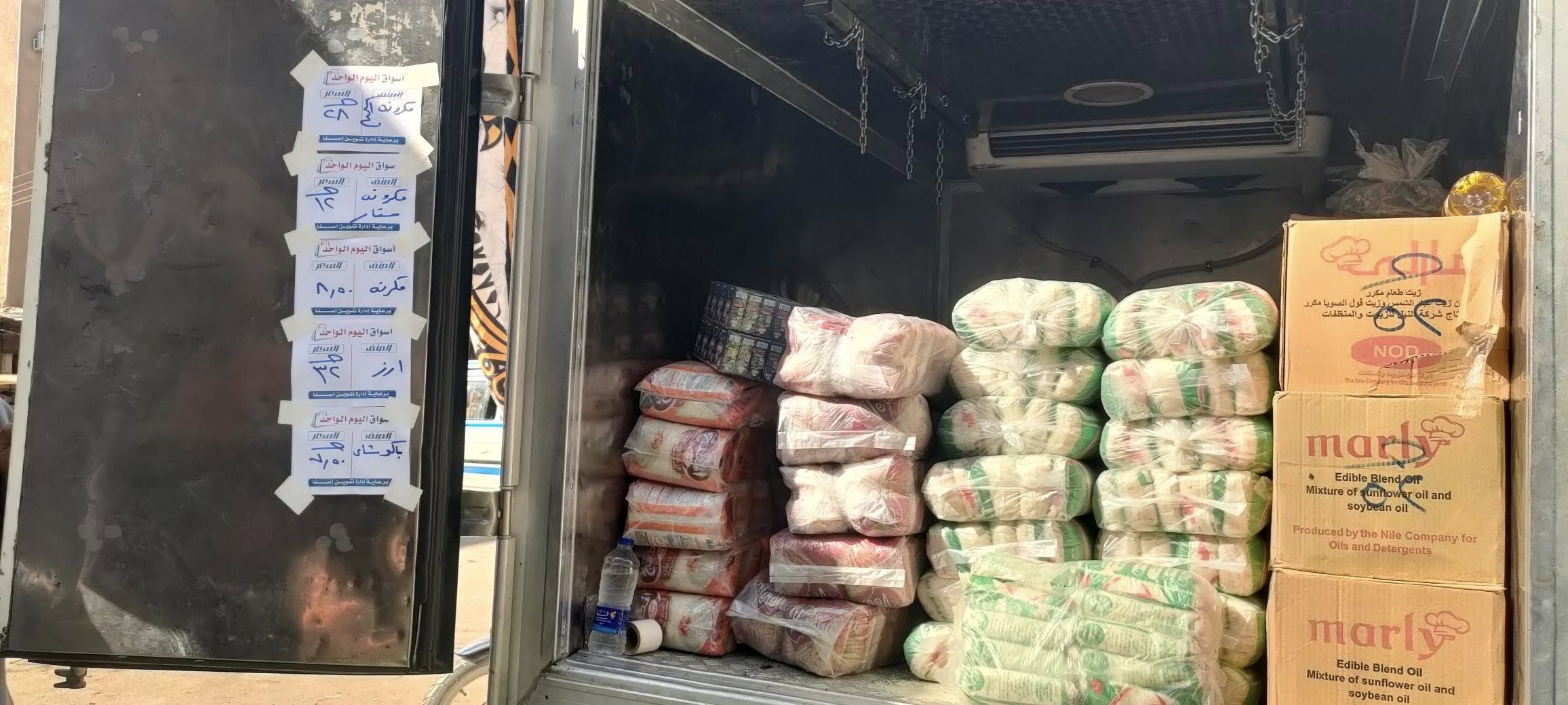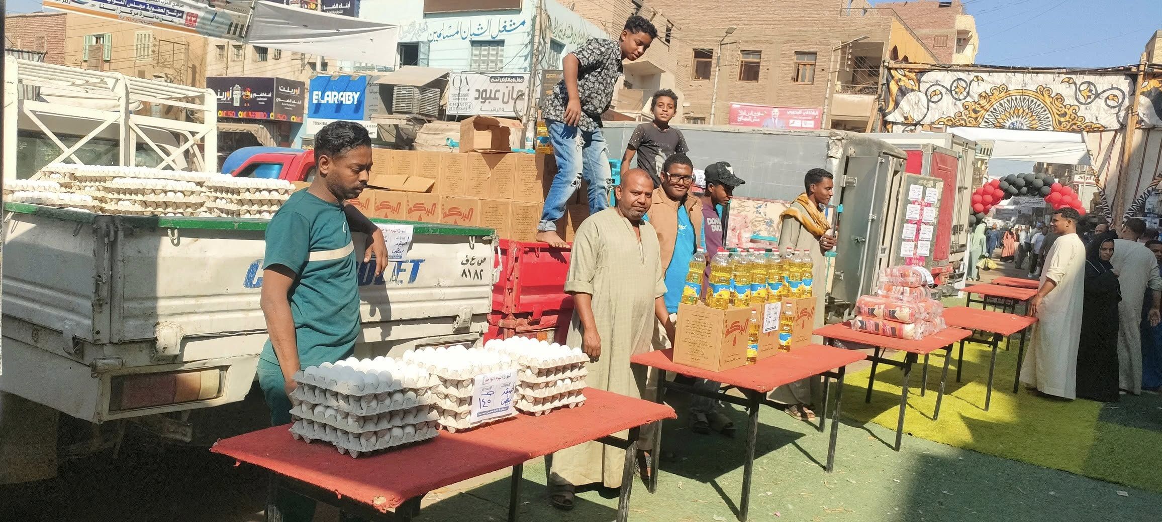 أرز وسكر ودقيق بسعر مخفض فى سوق اليوم الواحد بمدينة إسنا