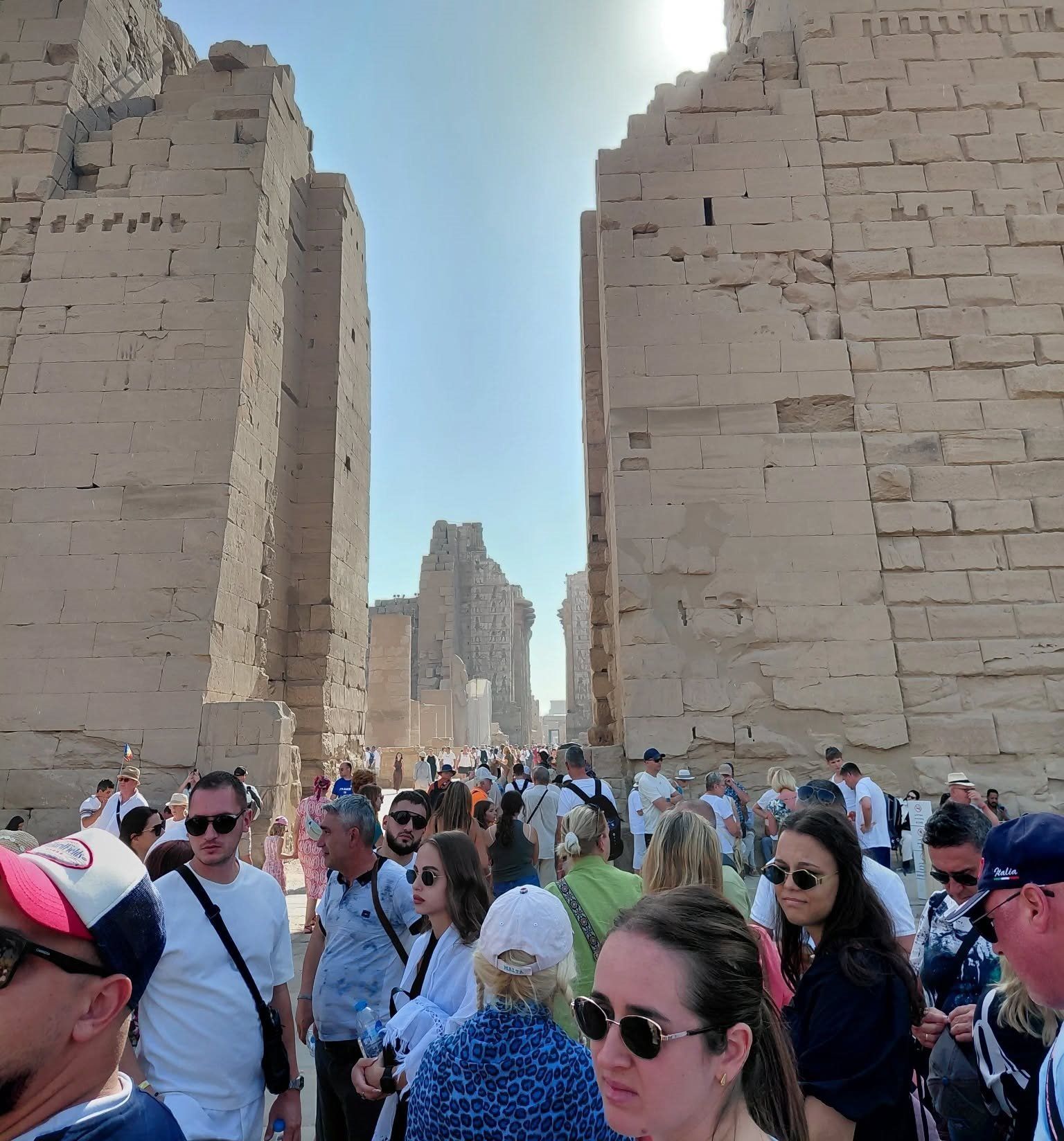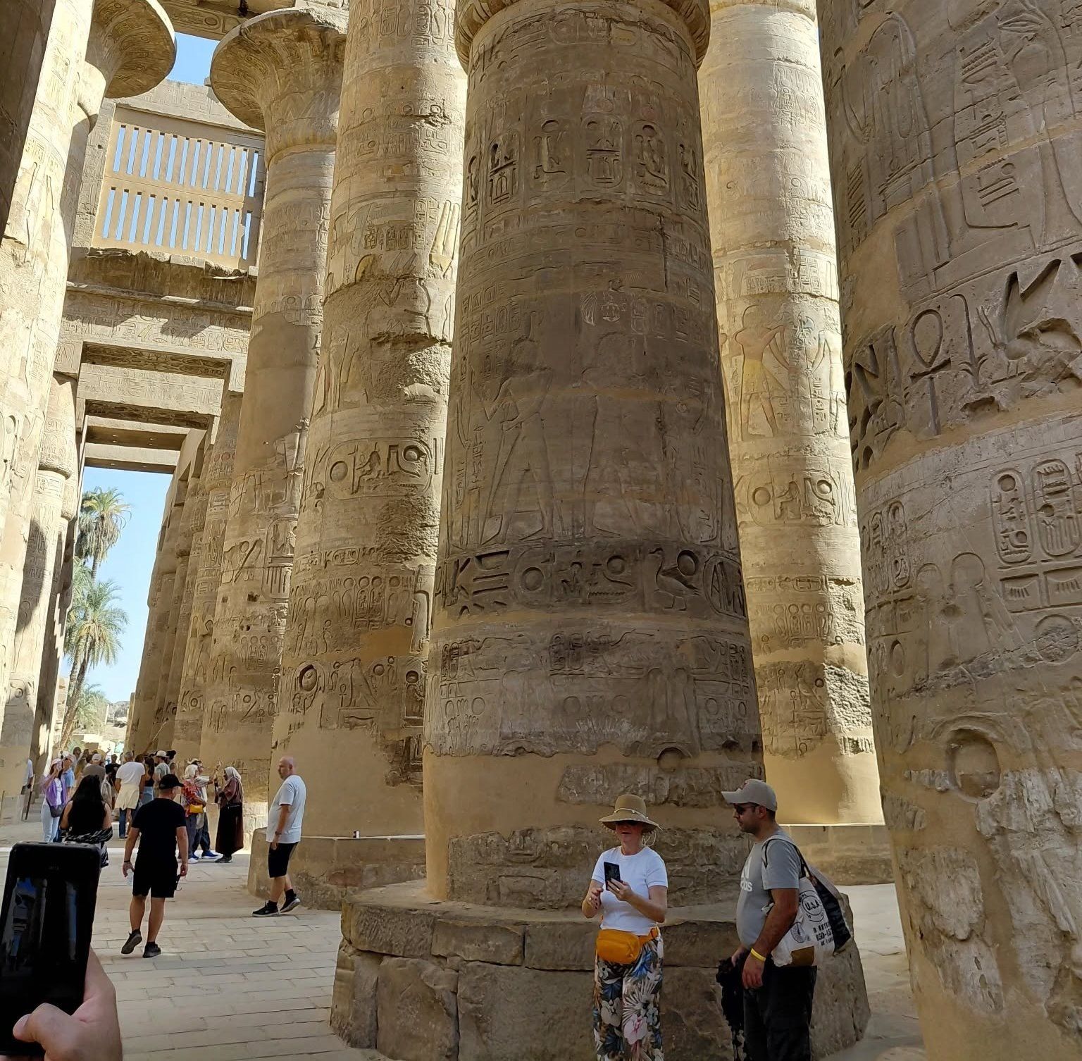استمتاع الأجانب بين أعمدة معابد الكرنك