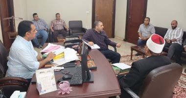الإثنين، 03 نوفمبر 2025 01:25 معقد اللواء أحمد جمال الدين السكرتير العام المساعد لمحافظة بنى سويف، في ضوء تكليفات الدكتور محمد هاني غنيم محافظ بني سويف ، اجتماعا لمتابعة سير أعمال تطوير مسجد السيدة حورية بمدينة بني سويف، وذلك بحضور: الشيخ رجب حسين عبد اللطيف مدير إدارات الأوقاف بمديرية الأوقاف، المهندس رامي رجب مدير التخطيط العمراني بالمحافظة، ياسر محمود من منطقة الآثار، المهندس كريم محمد مؤسسة مساجد، والمعنيين من إدارتي الشؤون القانونية والتخطيط العمراني بديوان عام المحافظة.
