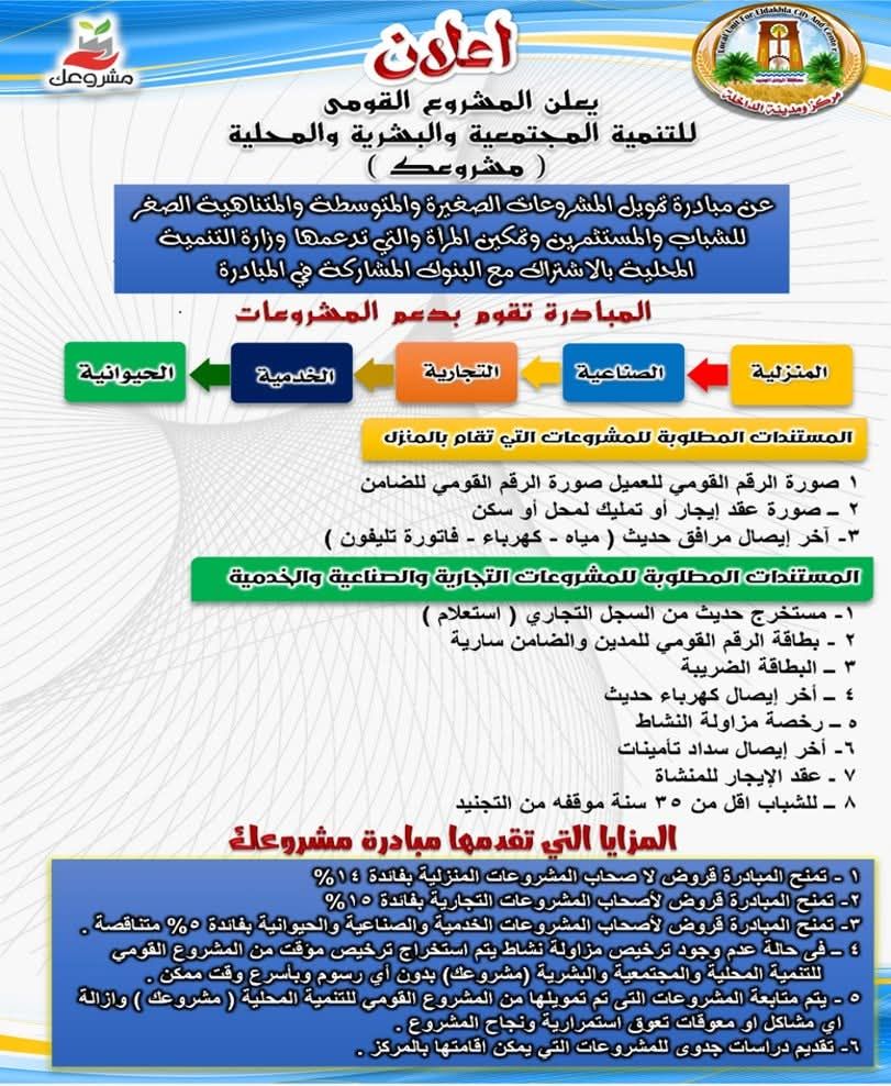 للتنمية المحلية والمجتمعية والبشرية (مشروعك) بدون أي رسوم وبأسرع وقت ممكن .