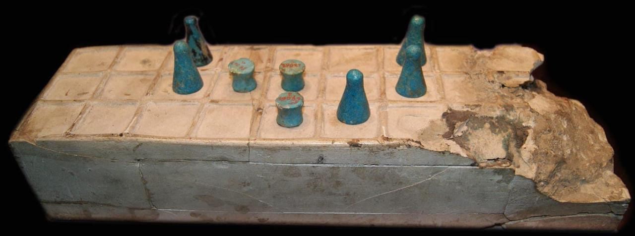 وكذلك أن اللعبة جسدت صراعًا رمزيًا للعبور نحو الحياة الأخرى، ولهذا ظهرت فى مشاهد جنائزية، وزُود بها المتوفى ضمن مقتنياته الدنيوية والدينية، وقد تم العثور على أقدم نموذج معروف لهذه اللعبة بمنطقة المحاسنة فى سوهاج، وكان مصنوعًا من الطين المحروق، ويضم 18 مربعًا فى ثلاث صفوف.