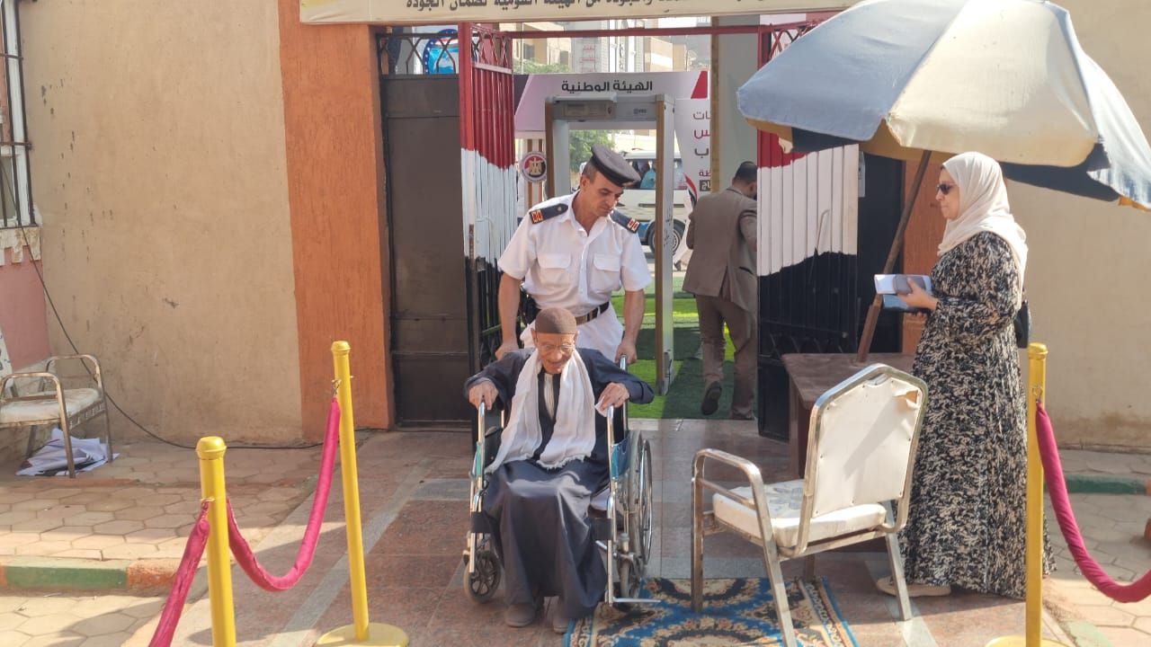 شهدت مدرسة أسماء بنت أبى بكر مقر اللجنة الانتخابية بمدينة سوهاج ، اليوم الاثنين، حيث حرص أحد المواطنين المسنين على الإدلاء بصوته في انتخابات مجلس النواب 2025، رغم تقدمه في السن، إذ وصل إلى اللجنة وقامت الأجهزة الأمنية بنقله على كرسي متحرك إلى داخل مقر اللجنة.