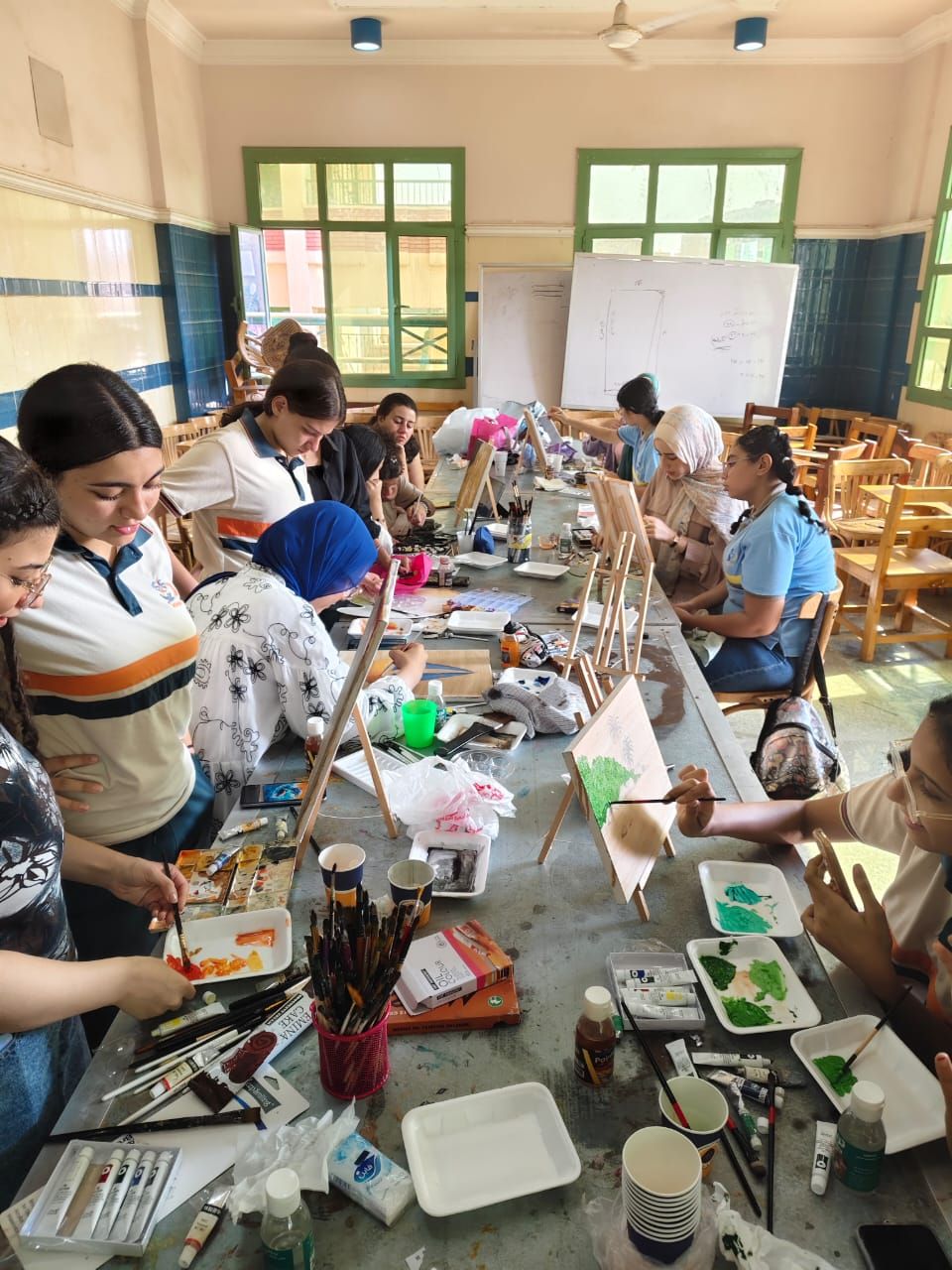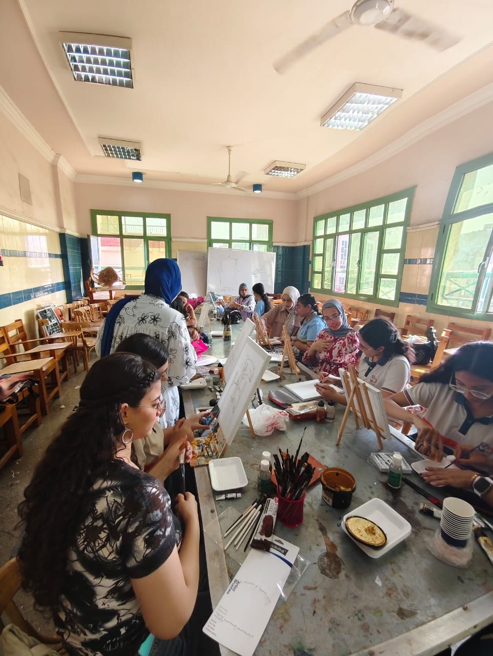 وقد تميزت الورشة بأجواء فنية مفعمة بالحيوية، حيث عبّر طلاب المدارس عن رؤاهم الإبداعية من خلال أعمال نحت وتصوير تنوّعت بين التعبير الواقعي والخيال الفني، تحت إشراف الفنانين والأساتذة، بينهم الدكتورة كارولين ثروت، والدكتورة شهيرة عنتر قطبوالفنانة التشكيلية رشا إسحق، والفنانة سلفيا سليمان، الذين قدموا للطلاب تجارب ملهمة ومهارات عملية في التكوين، اللون، والملمس الفني.