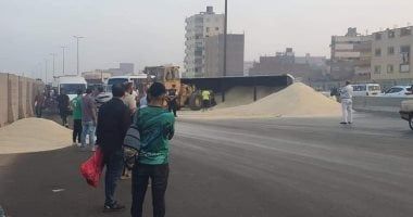 زحام مرورى بسبب انقلاب مقطورة أعلى الطريق الأوسطى