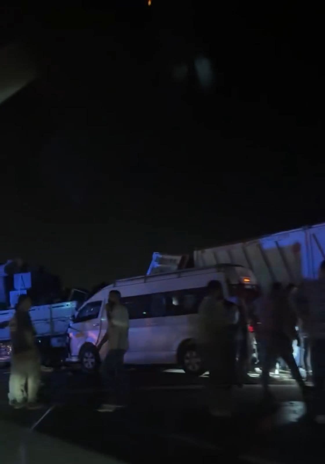 ولقى شخصان مصرعهما وأصيب آخرون إثر اصطدام تريلا بـ8 سيارات وأتوبيس بطريق السويس الصحراوى وتم نقلهم الى المستشفى فيما يقوم رجال المرور بتسيير حركة المركبات وإجراء تحويلات مرورية لحين رفع حطام الحادث.
