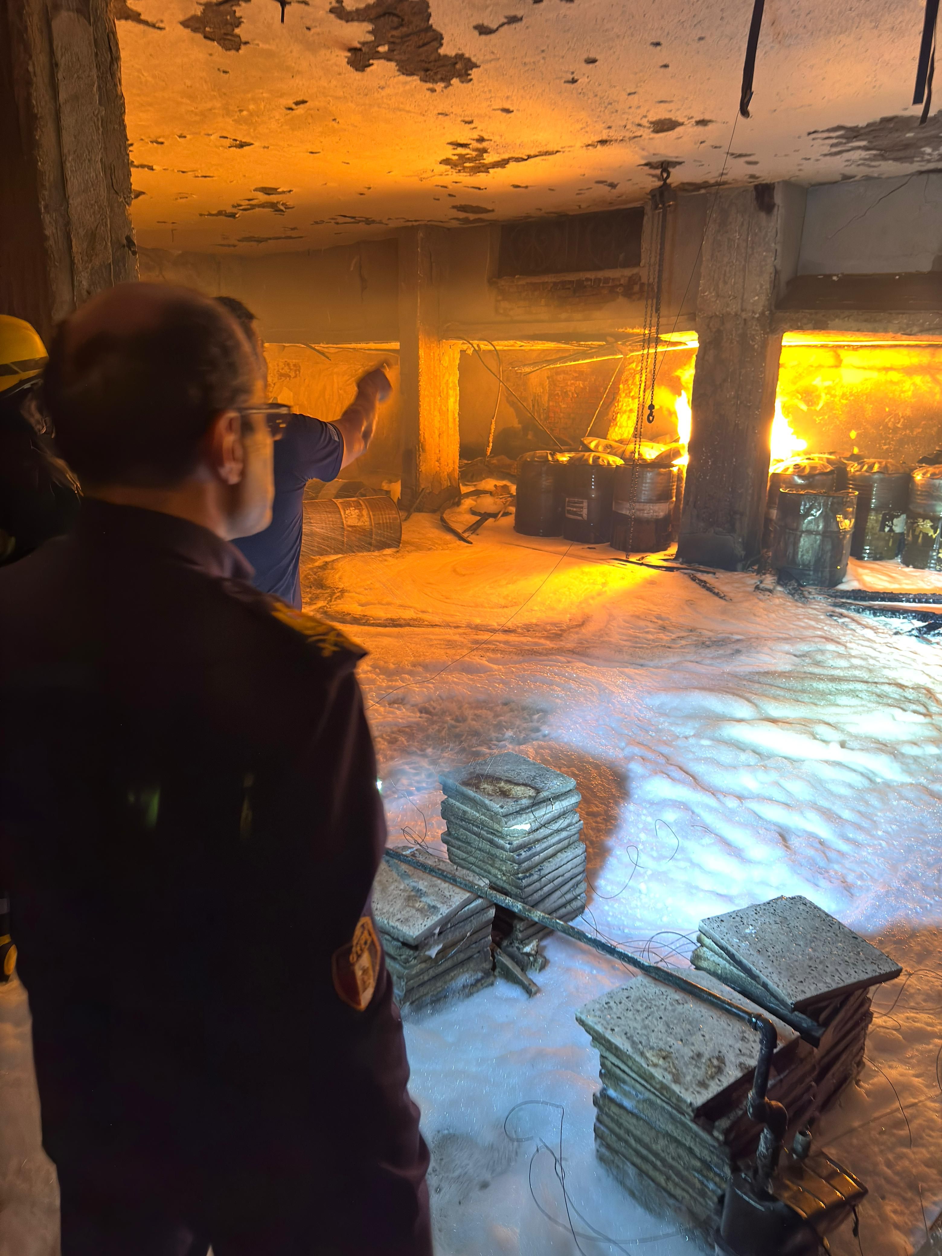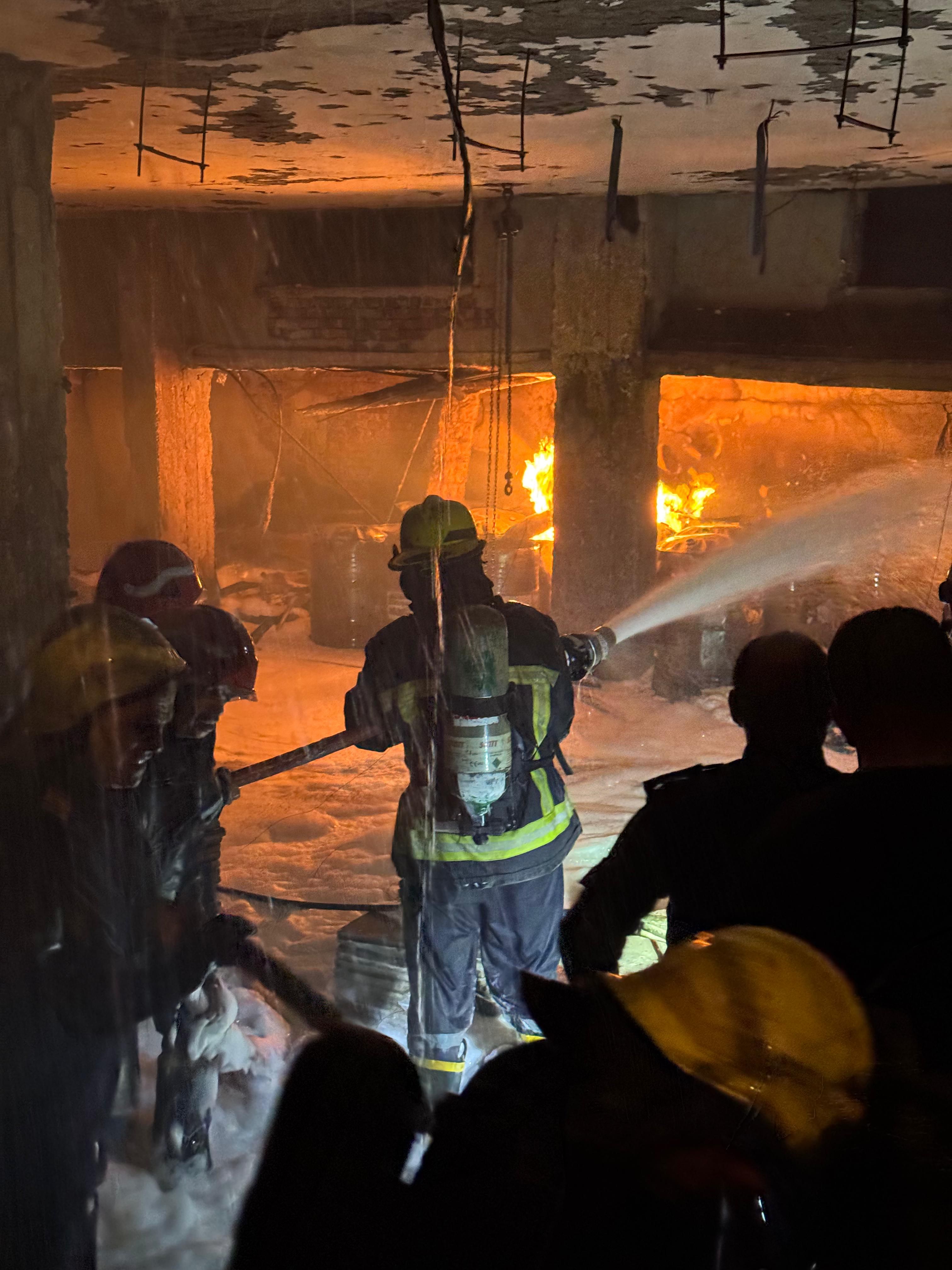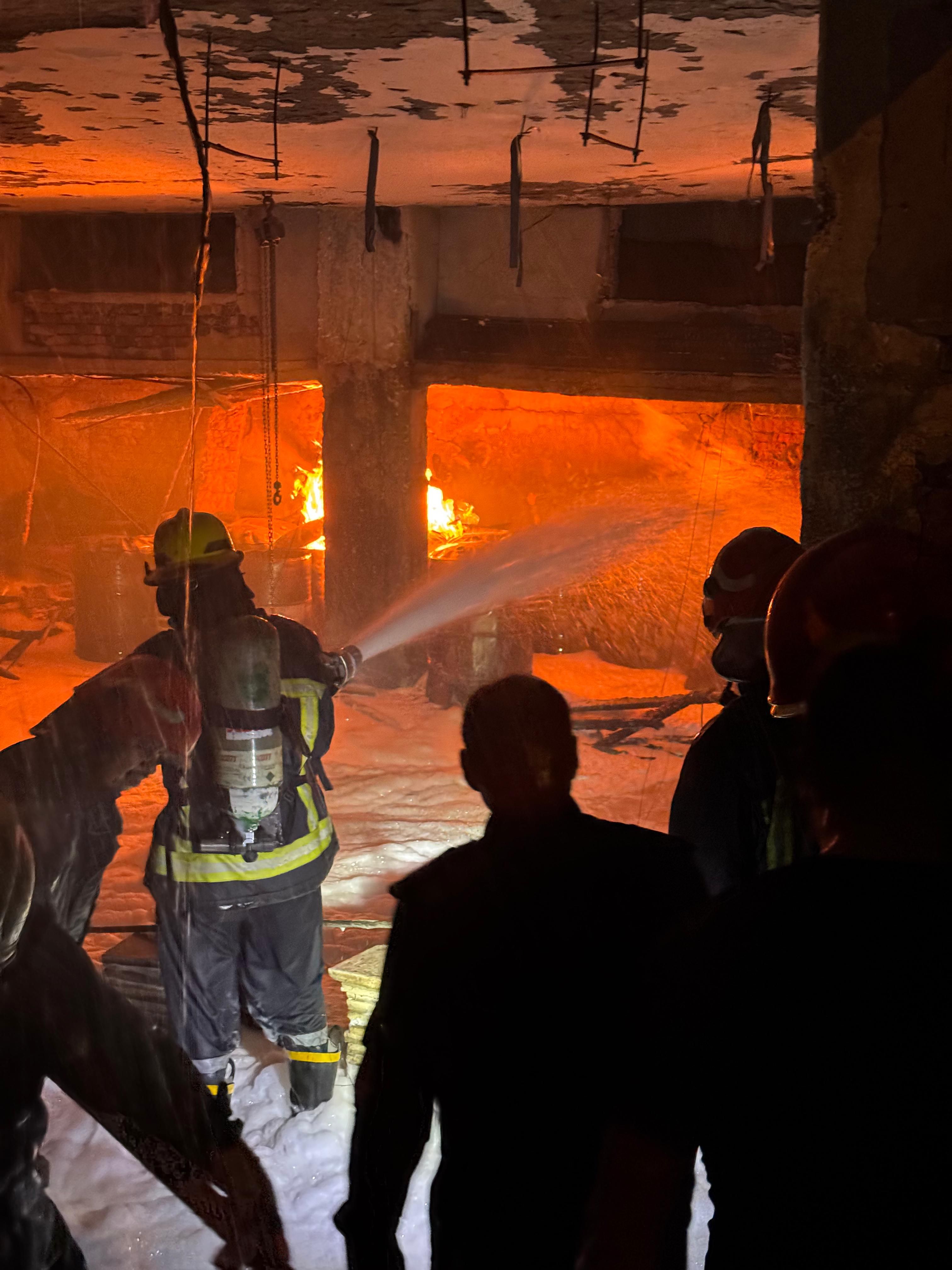 وبالانتقال تبين نشوب حريق ببراميل بويات وكيماويات داخل بدروم مستغل مخزن مواد البويات والكيماويات على مساحة (300) متر تقريباً داخل ڤيلا مكونة من 4 طوابق بمحل البلاغ، ولم ينتج عنه وجود مصابين أو محتجزين وتم الإطفاء بمعرفة القوات، و جاري التبريد، وتم اتخاذ الإجراءات القانونية اللازمة تجاه الواقعة.