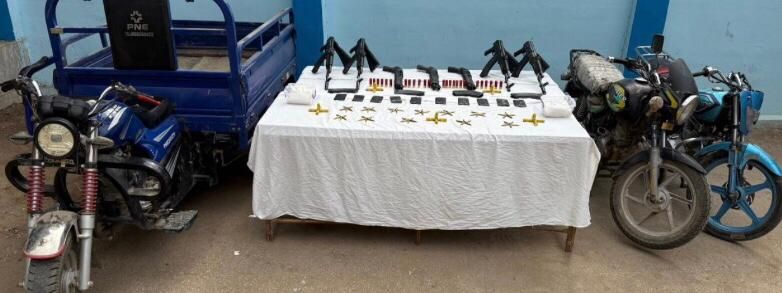 عُثر بحوزتهم على سبع قطع سلاح ناري بينها أربع بنادق آلية وثلاث بنادق خرطوش، وكمية من الذخيرة المتنوعة، وثلاثة كيلوجرامات من المواد المخدرة من أنواع الحشيش والشابو، بالإضافة إلى دراجتين ناريتين.