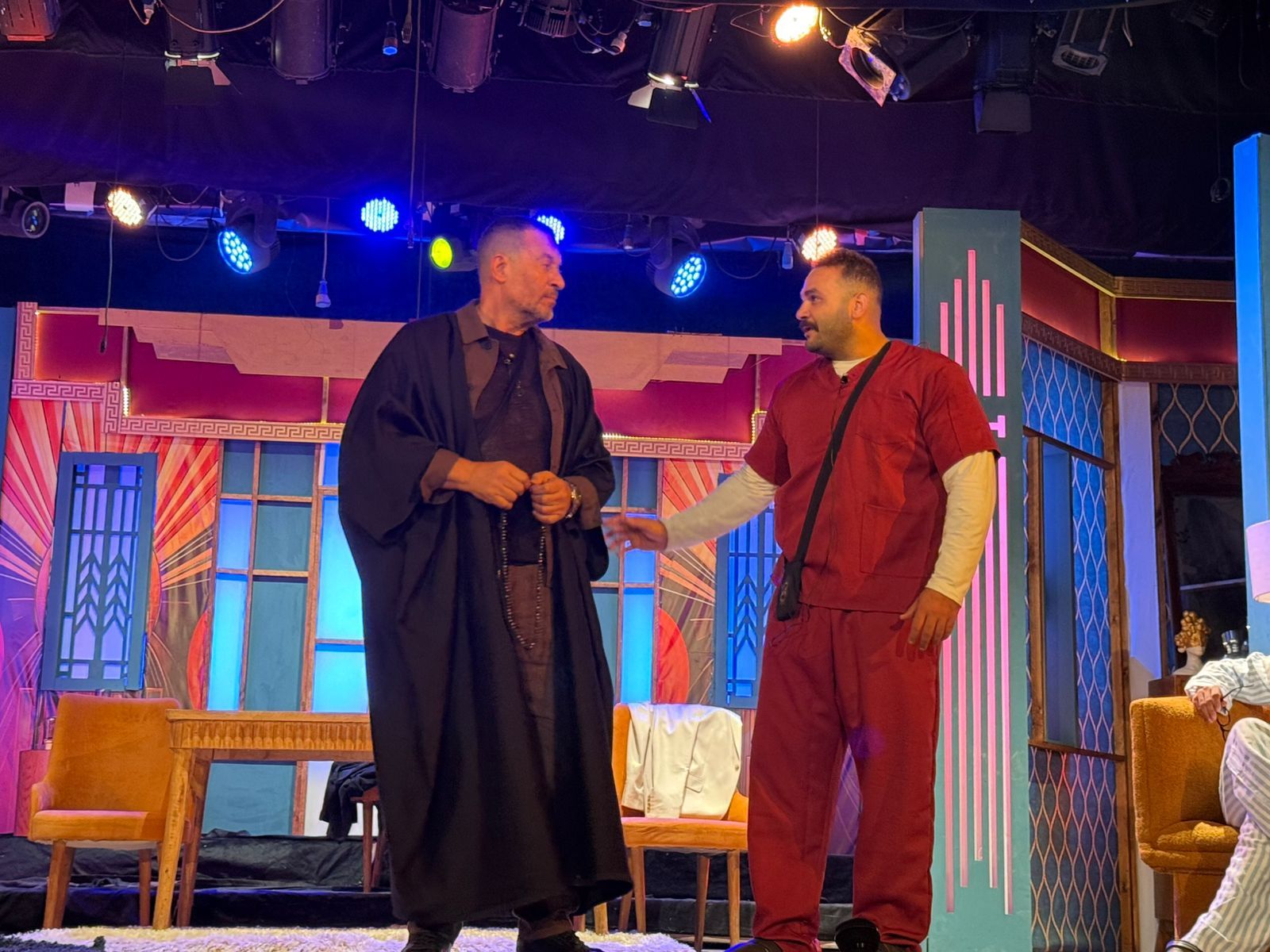 حل الفنان ماجد المصرى ضيف شرف عرض عين العقل الذى عرض اليوم على مسرح الهوسابير، ضمن فعاليات الدورة الثامنة من مهرجان نقابة المهن التمثيلية، والعرض من بطولة وليد عبد الغنى، محمد يوركا، محمد فريد، أشرف فاروق، تيمور محمود، ريساء سلامة، أحمد شريف، ميرنا نديم، وائل العونى، إخراج محمد فريد.