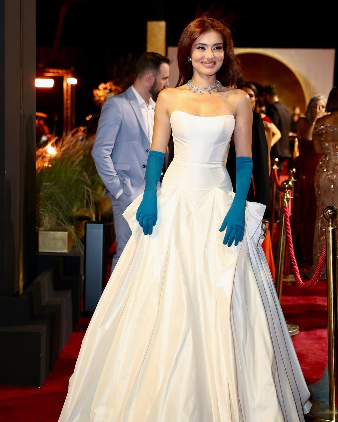 لفتت الفنانة جيهان الشماشرجى الأنظار بإطلالاتها الراقية والبسيطة خلال فعاليات السينمائي في دورته الثامنة، حيث جمعت بين الأناقة الهادئة والذوق الرفيع في اختياراتها على السجادة الحمراء، إذ تألقت جيهان بفستان أبيض طويل مكشوف الكتفين أضفى عليها لمسة أنوثة ناعمة، ونسّقته مع جوانتى أزرق فى إطلالة تشبه الأميرات.