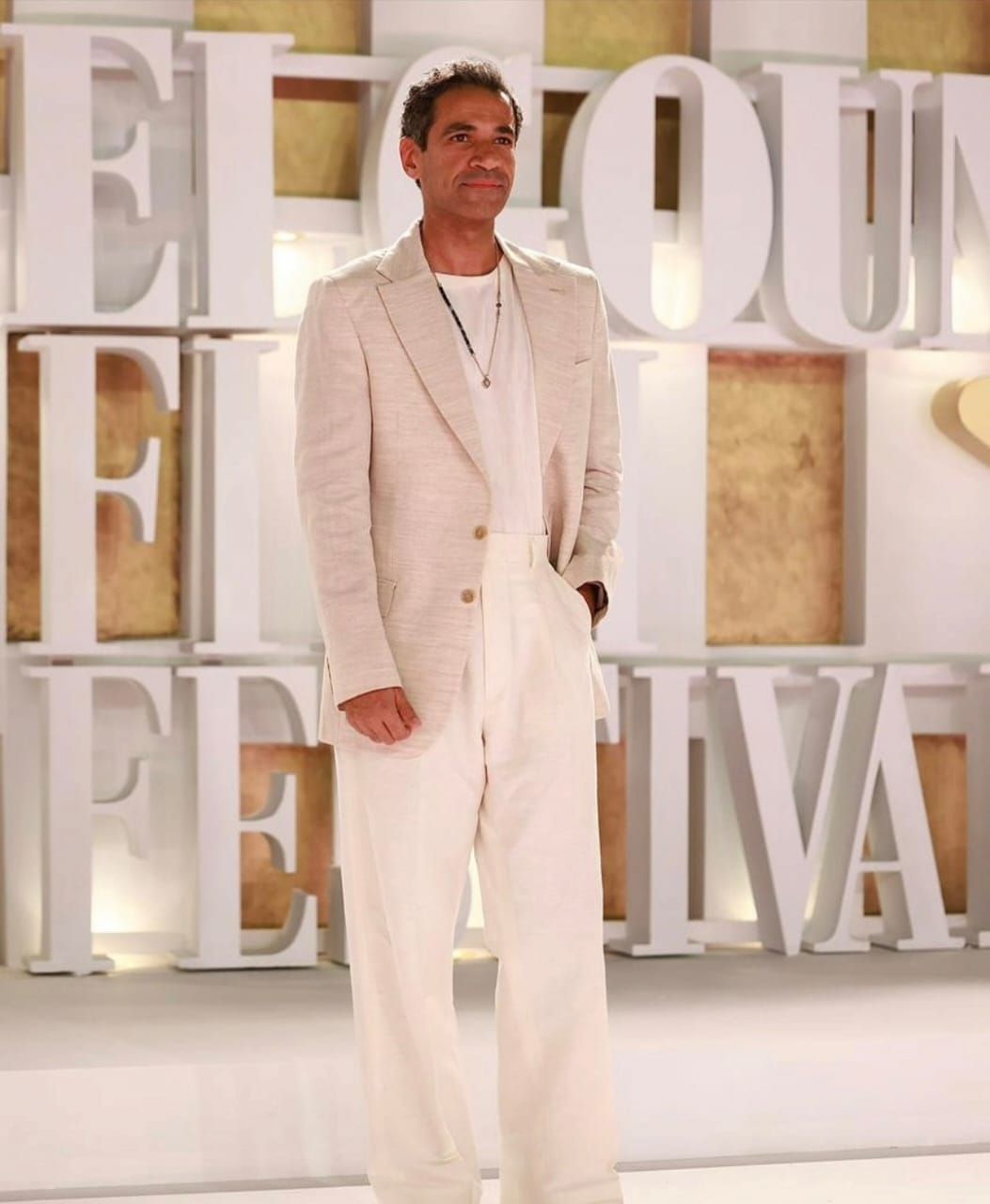 السبت، 18 أكتوبر 2025 10:55 محضر النجم أحمد مالك عرض فيلمه كولونيا ضمن فعاليات مهرجان الجونة السينمائي الدولى متأخرا بسبب تواجده في حفل عشاء النجمة العالمية كيت بلانشيت، الذى يقام في نفس توقيت السجادة الحمراء لفيلم كولونيا، وجاء مع مالك أيضا عدد من الفنانين الذي تواجدوا في حفل العشاء منهم هدى المفتى، تارا عماد، هنا شيحة، نور النبوى، طه دسوقى وزوجته.