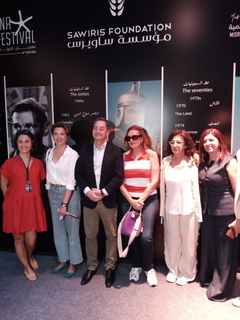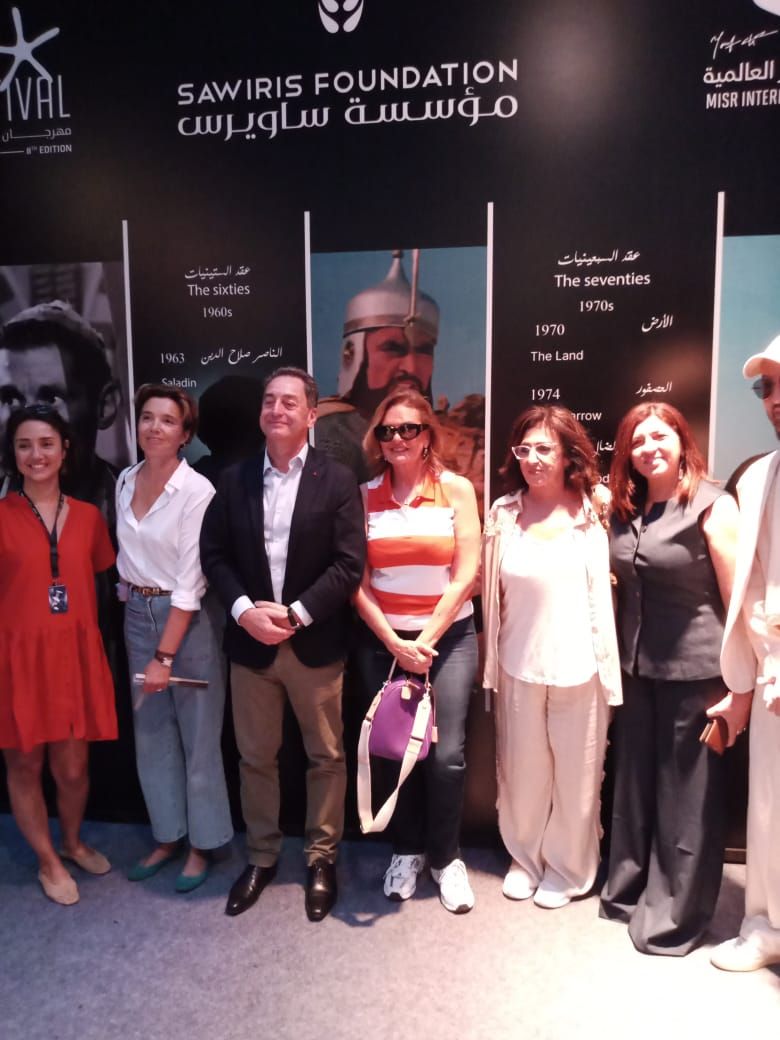 سفير فرنسا يزور معرض يوسف شاهين بمهرجان الجونة بصحبة يسرا وماريان خوري