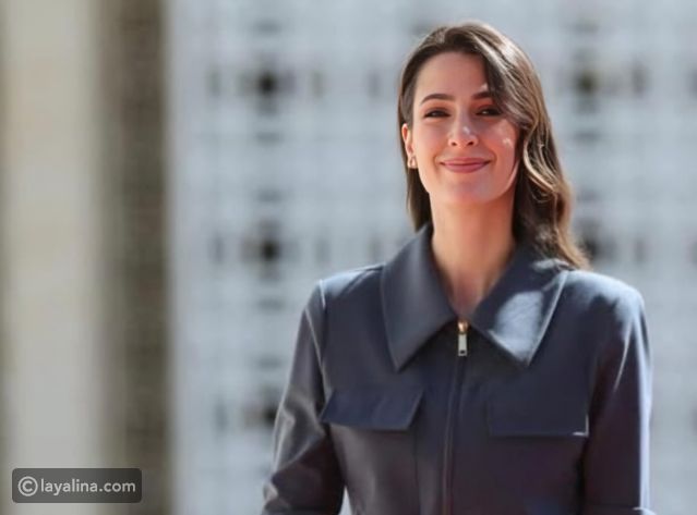 تألقت الأميرة رجوة ببدلة رسمية أنيقة باللون الرمادي الداكن المائل إلى الأزرق، بتصميم عصري من قطعتين يعكس الذوق الملكي الرصين الذي يجمع بين البساطة والدقة في التفاصيل، وجاءت السترة ذات ياقة عريضة وسحّاب أمامي معدني يمنحها طابعاً عملياً راقياً، مع حزام جلدي أسود رفيع أبرز خصرها وأضفى على الإطلالة لمسة أنثوية متوازنة.