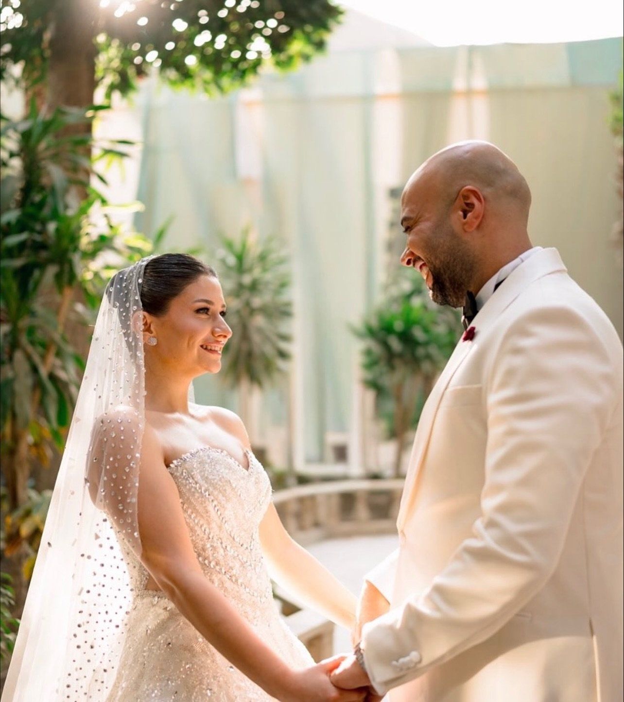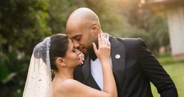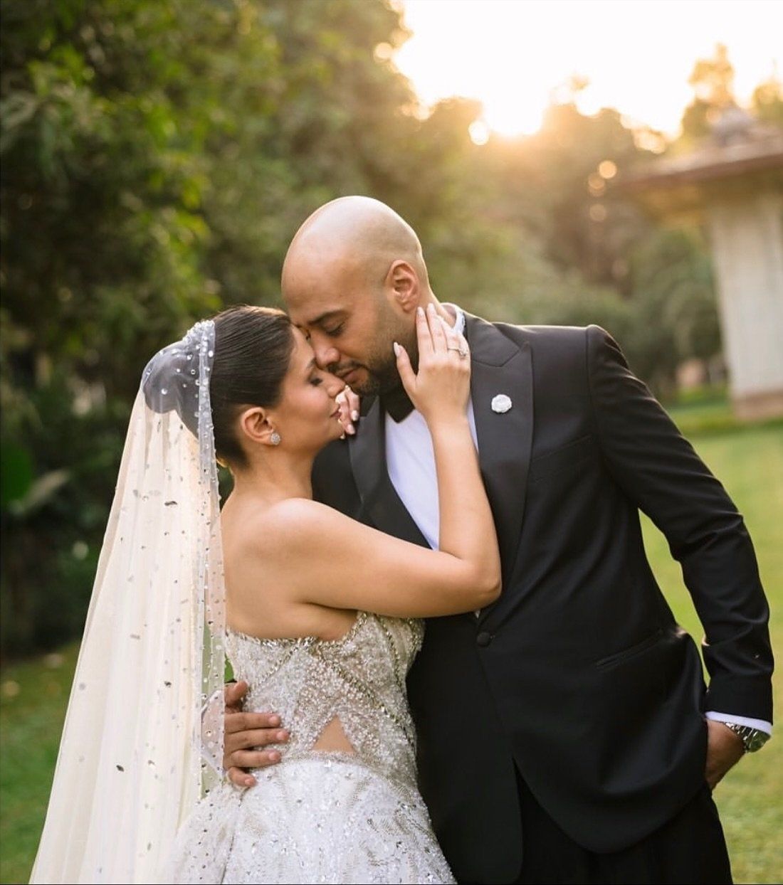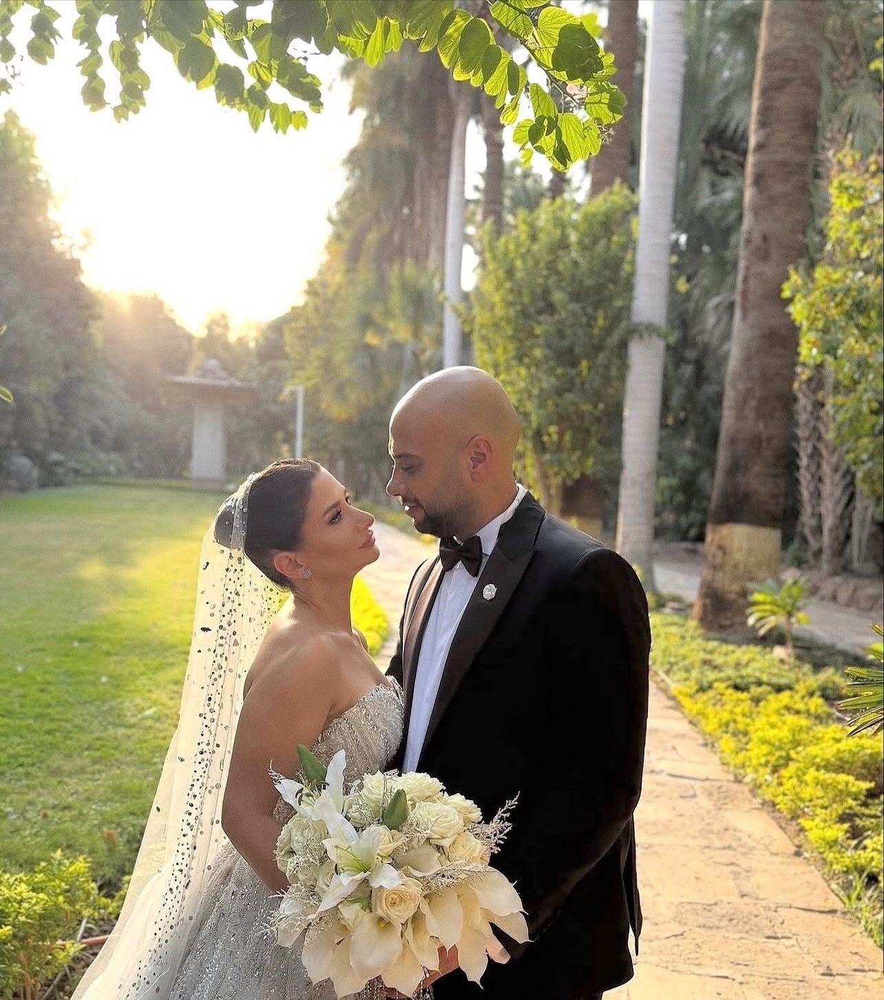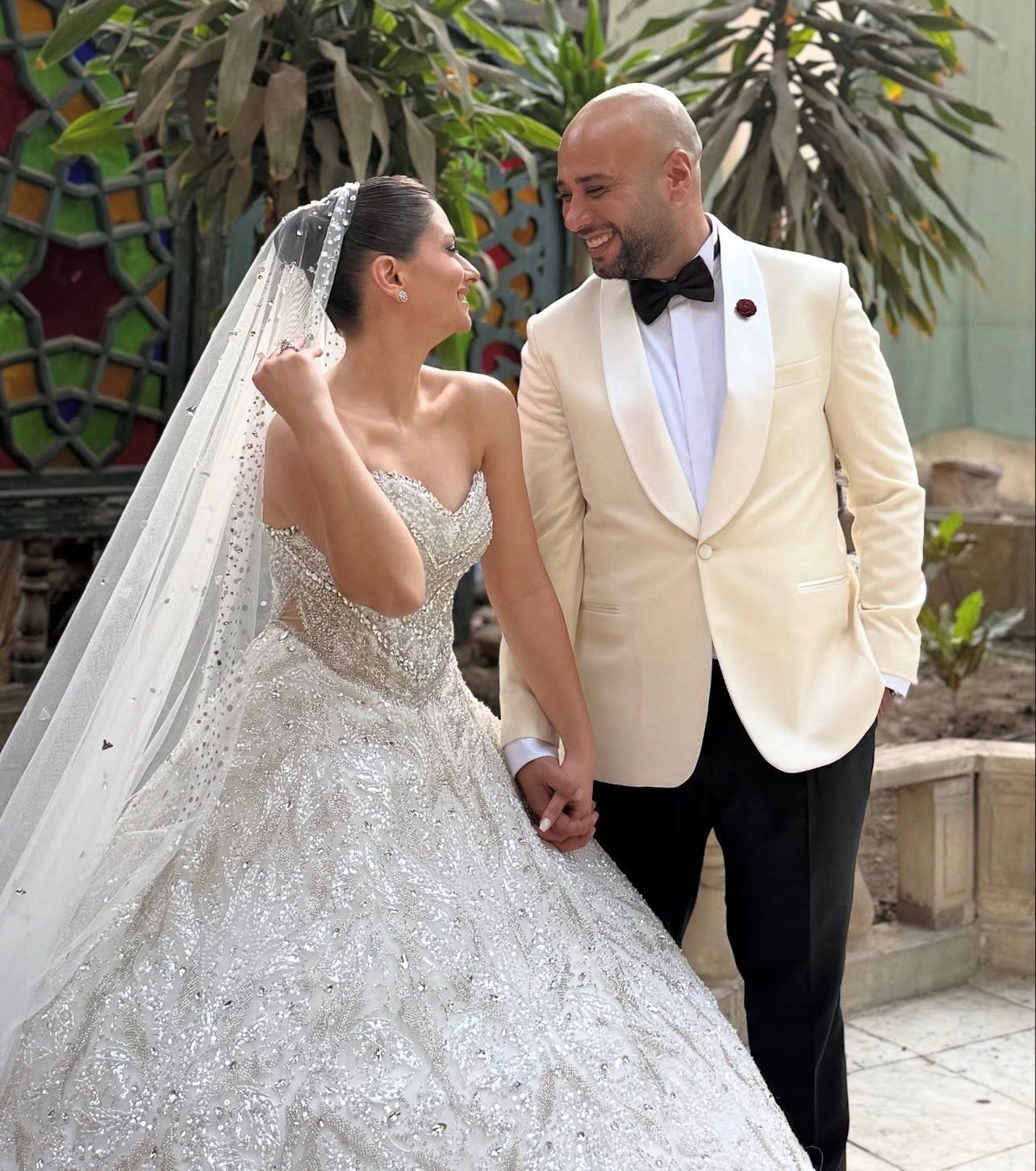 حاتم صلاح وزوجته في جلسه تصوير حفل الزفاف