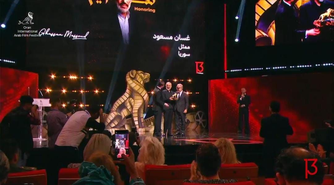 الجمعة، 31 أكتوبر 2025 12:55 صكرم مهرجان وهران السينمائى فى دورته 13، النجمة المصرية نادية الجندى، والنجم العالمى غسان مسعود وقدم تكريمه الدكتور أشرف زكى، والمخرج رشيد بوشارب والتى قدمت له الجائزة النجمة درة.