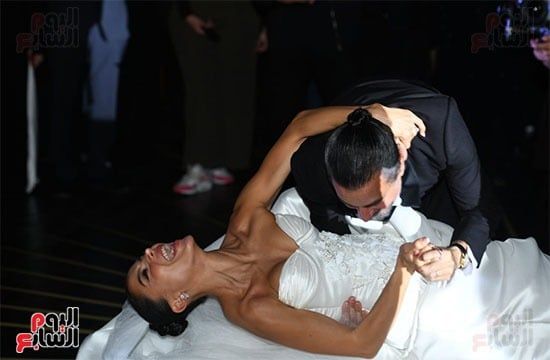 الجمعة، 31 أكتوبر 2025 12:58 صشهد حفل زفاف المخرج هادى الباجورى سقوط عروسه هايدى خالد، وذلك أثناء رقصهما معا فى حفل زفافهما والذى شهد أول ظهور فى مناسبة عامة للنجمة منة شلبى وزوجها المنتج أحمد الجناينى، وذلك خلال حفل الزفاف الذى حضره العديد من مشاهير الفن ومنهم محمد رمضان والذى أشعل أجواء الحفل.