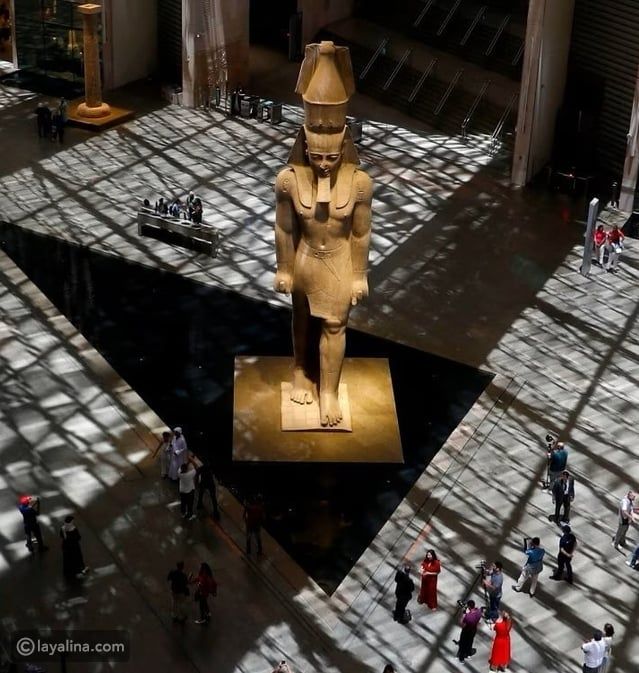 يتضمن المتحف المصري الكبير في بهوه الرئيسي تمثال الملك رمسيس الثاني، وهو التمثال الأضخم، وعلى جانبيه مجموعة من التماثيل لملوك مصر القديمة.