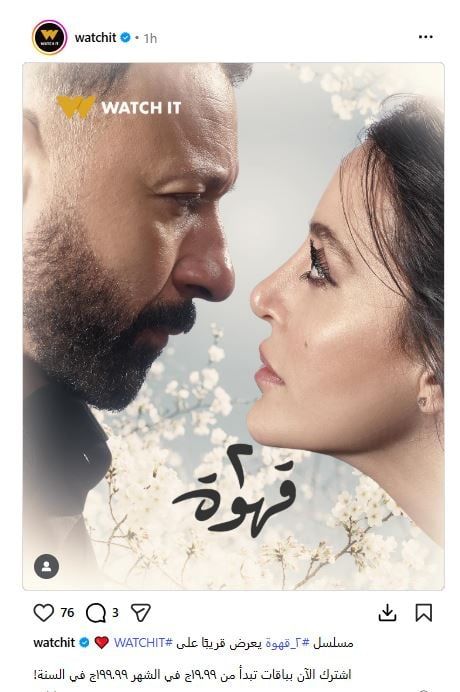 روجت منصة Watch it لعرض مسلسل 2 قهوة عبر حسابها الرسمي على موقع إنستجرام، حيث كشفت عن بوستر المسلسل وأعلنت عن عرضه قريباً من خلالها، كما طرحت قناة DMC البوستر أيضا معلنة عن عرضه من خلال شاشتها.
