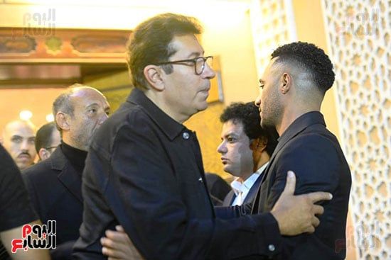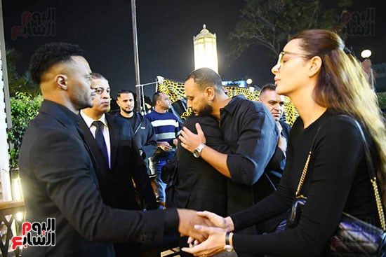 وحضر عدد من الفنانين منذ الدقائق الأولى لتقديم واجب العزاء، منهم: ميرفت أمين، عمرو سعد، عصام السقا، لقاء سويدان، جوري بكر، حسن الرداد، درة، إيهاب فهمي، ساندي علي، المؤلف أحمد مراد، إيهاب فهمي، محمد علي رزق، محمد سعد، أشرف زكي نقيب المهن التمثيلية، سيد رجب، منة فضالي، منذر رياحنة، حسام داغر.