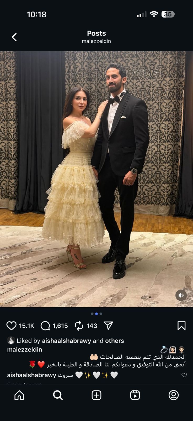 أعلنت النجمة مي عز الدين زواجها ونشرت صورة لها من حفل الزفاف عبر حسابها بموقع انستجرام، وكتبت: الحمد لله الذي تتم بنعمته الصالحات، أتمنى من الله التوفيق ودعواتكم لنا الصادقة والطيبة بالخير.