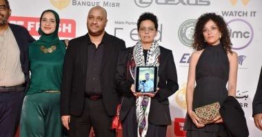 المخرجة مى سعد بحمل صورة صديقها المخرج أحمد الدنف لعدم استطاعته الحضور وتواجده في غزة (1)