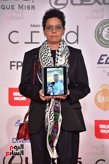 المخرجة مى سعد بحمل صورة صديقها المخرج أحمد الدنف لعدم استطاعته الحضور وتواجده في غزة (3)