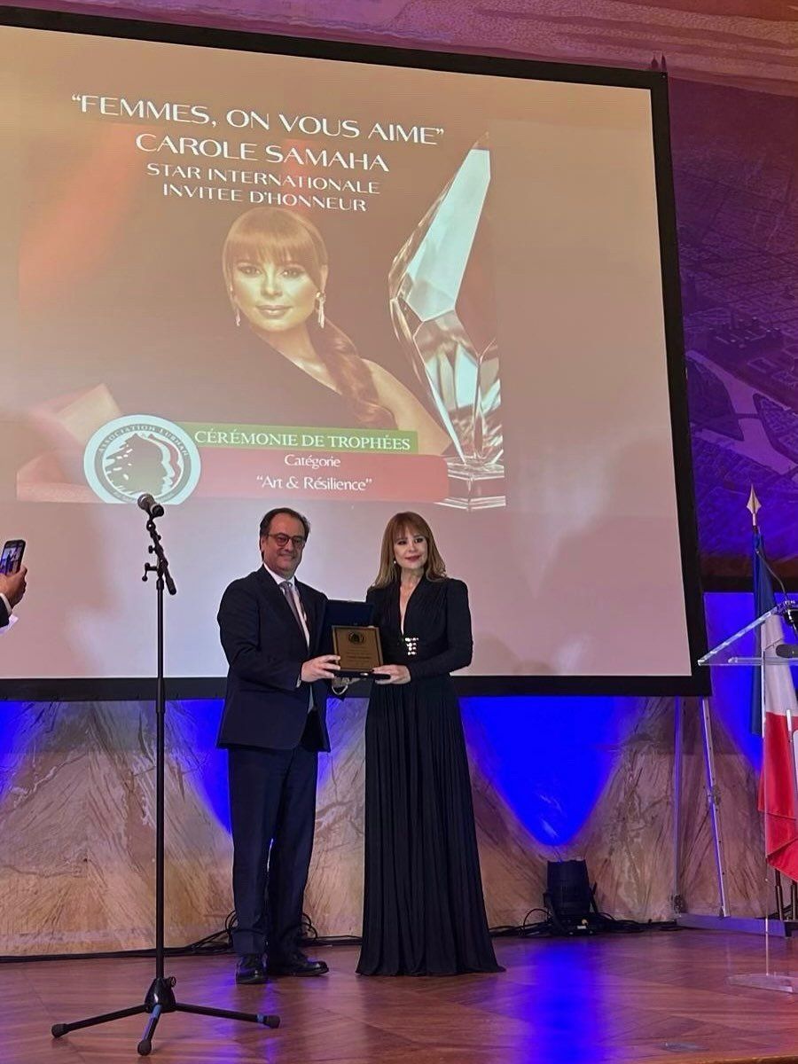 الأحد، 16 نوفمبر 2025 08:18 ماحتفلت النجمة كارول سماحة بحصولها على جائزة الفن والصمود في باريس خلال حفل "Femmes, on vous aime" بحضور سفير لبنان في فرنسا، وكتبت كاورل سماحة عبر حسابها بموقع انستجرام، لقد تأثرت بشدة لحصولي على جائزة "الفن والصمود"، وهي تذكير لكل تحدٍ شكل رحلتي.