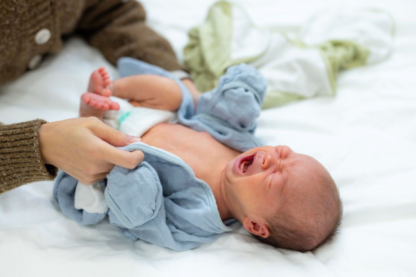 أخيراً، قد تُساهم طرق إلباس الرضّع وتغطيتهم خلال فصل الشتاء، دون قصد، في زيادة شعورهم بعدم الراحة، فحرصاً من الأهل على تدفئة أطفالهم، غالباً ما يتم إلباسهم طبقات متعددة من الملابس أو لفّهم بأغطية ثقيلة، ورغم أهمية الحفاظ على دفء الطفل، إلا أن المبالغة في التدفئة قد تؤدي إلى ارتفاع حرارة الجسم بشكل مفرط أو تقييد حركة الرضيع، وكلا الأمرين قد يسبّبان له انزعاجاً ويزيدان من أعراض المغص، كما أن لفّ الطفل بشكل محكم قد يعيق حركته الطبيعية التي تُساعد على طرد الغازات من الجسم، ما يُفاقم شعوره بالانتفاخ والانزعاج في منطقة البطن، هذا بالإضافة إلى أن الملابس أو الأغطية المشدودة على منطقة البطن قد تزيد من الضغط على الجهاز الهضمي، مما يجعل عملية الهضم أكثر صعوبة، ويُسهم في زيادة حدّة المغص.