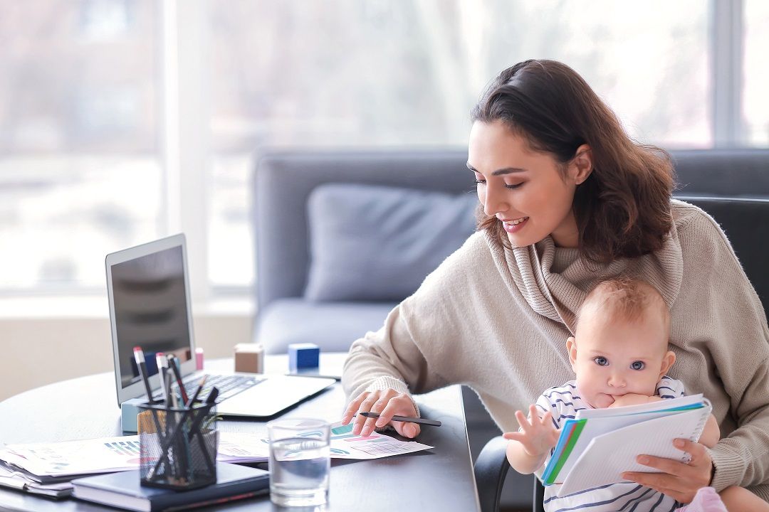 أم عاملة بين العناية بطفلها وأوراق عملها
