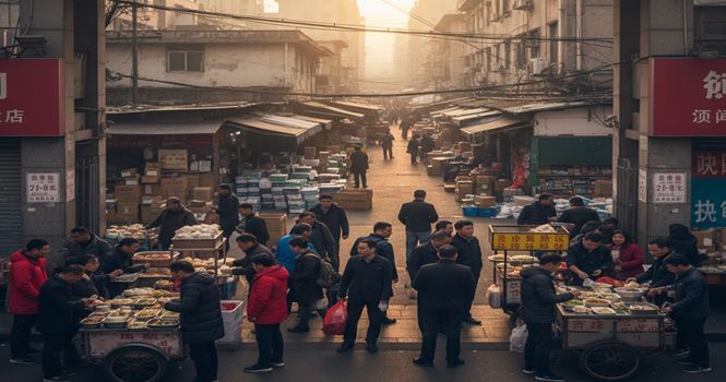 مع بزوغ الصباح في إحدى المدن الصينية المكتظة، تبدأ الحياة بإيقاعها المعتاد، فعند مدخل محطة القطار يزدحم الرصيف بعشرات الباعة الجائلين الذين يبيعون وجبات الإفطار السريعة دون تراخيص.