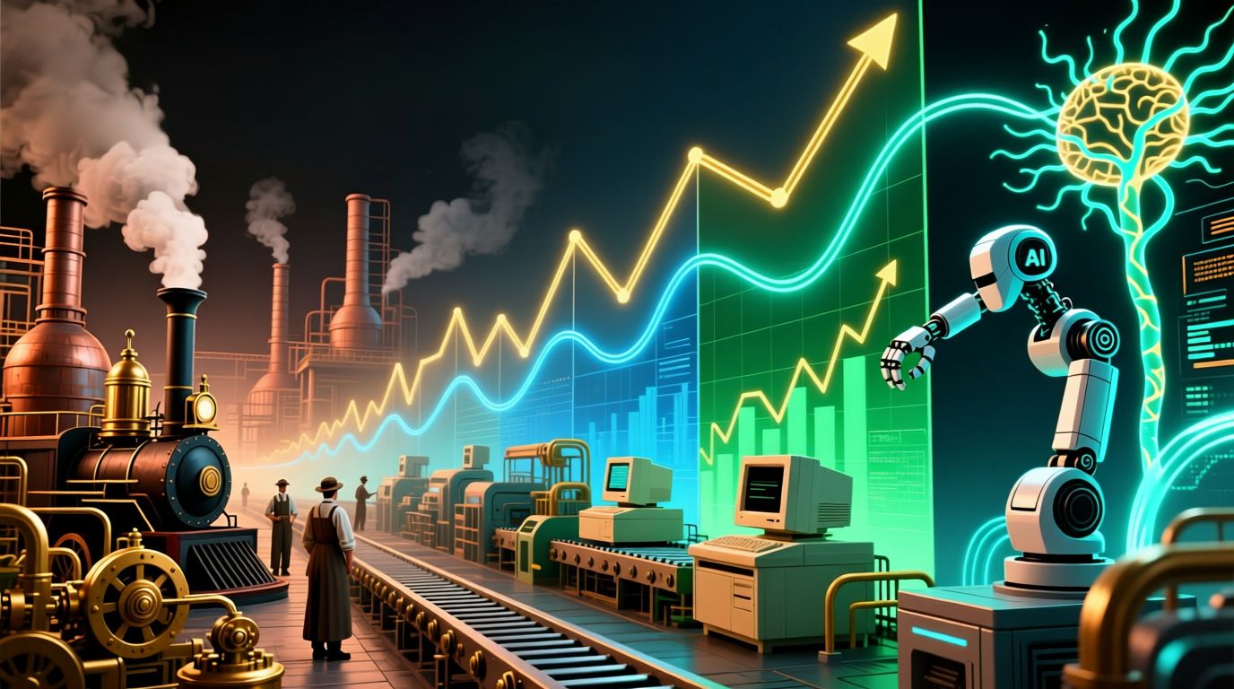 - شهد العالم خلال القرنين الماضيين طفرة غير مسبوقة في معدلات النمو الاقتصادي، قاعدتها الأساسية كانت التدفق المستمر للابتكارات التقنية، فكلما حلّت تقنية جديدة محل سابقتها، انطلقت موجة من الإنتاجية والنمو، وهي العملية التي تُعرف بـ "التدمير الخلّاق".