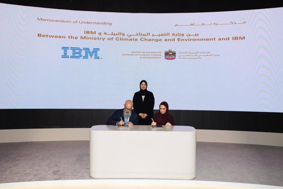 جرى توقيع الاتفاقية على هامش معرض «جيتكس جلوبال 2025» في دبي، بحضور الدكتورة آمنة بنت عبدالله الضحاك، وزيرة التغير المناخي والبيئة. وقّع الاتفاقية عن الوزارة المهندسة أمل عبد الرحيم، وكيل الوزارة المساعد لقطاع الخدمات المساندة والرئيس التنفيذي للذكاء الاصطناعي والابتكار، وعن شركة IBM السيد شكري عيد، مديرها العام في منطقة الخليج والمشرق العربي وباكستان.