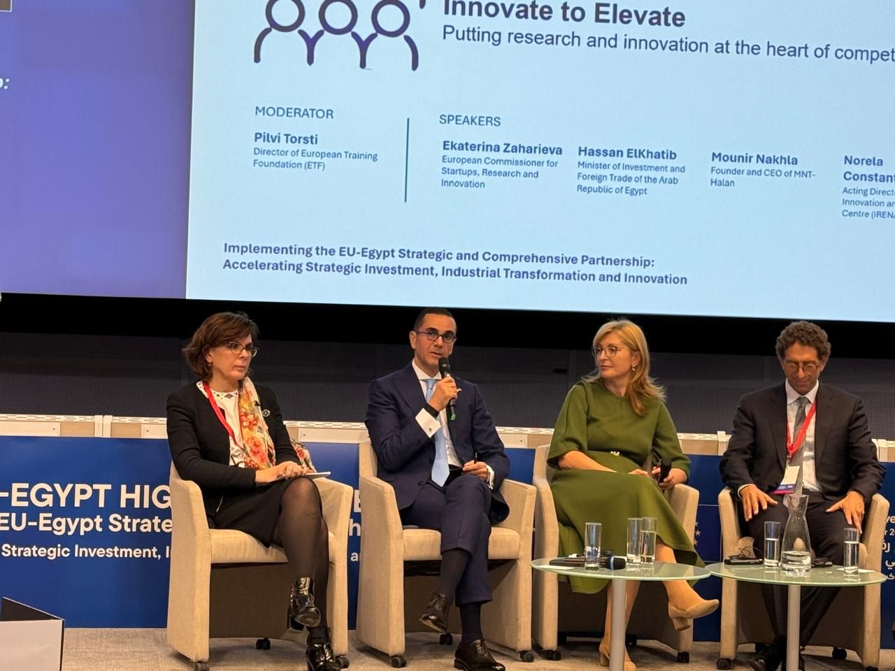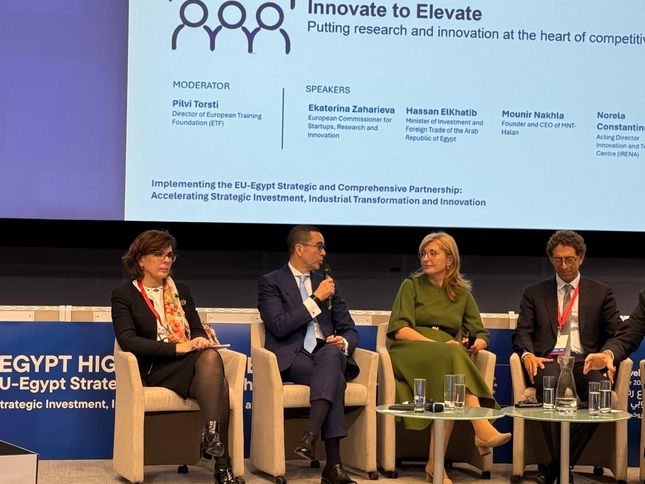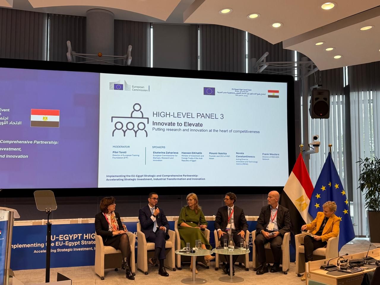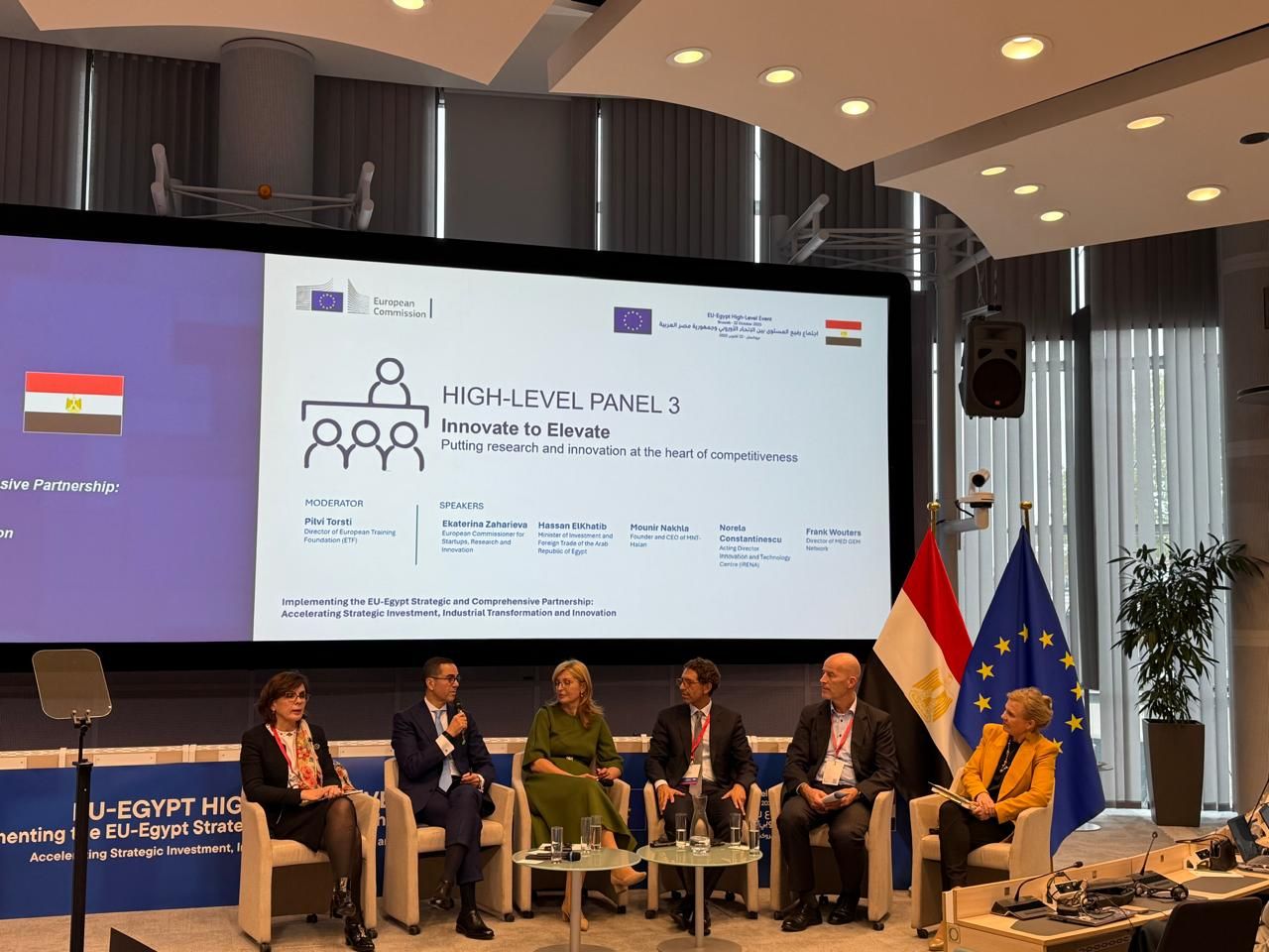 في إطار فعاليات القمة المصرية الأوروبية ببروكسل حول تعزيز القدرة التنافسية والابتكار الصناعي، شارك المهندس حسن الخطيب، وزير الاستثمار والتجارة الخارجية في الجلسة الرفيعة المستوى بعنوان "ابتكر لترتقي: وضع البحث والابتكار في قلب القدرة التنافسية"، وأدارت الجلسة السيدة بيلفي تورستي، مديرة المؤسسة الأوروبية للتدريب، وبحضور السيدة إيكاترينا زاهاريفا، المفوضة الأوروبية لشؤون الشركات الناشئة والبحث والابتكار، و منير نخلة، مؤسس و الرئيس التنفيذي MNT-Halan، و السيدة نورِيلا كونستانتينسكو، القائم بأعمال مدير مركز الابتكار والتكنولوجيا بالوكالة الدولية للطاقة المتجددة (IRENA)، وفرانك ووترز، مدير شبكة EU MED-GEM الممولة من الاتحاد الأوروبي.