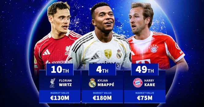 | اللاعبون الأعلى قيمة سوقية في العالم (أكتوبر 2025) | ||