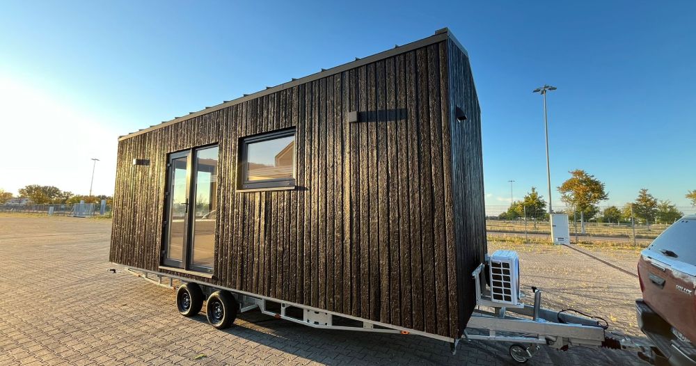 من الواجهة الخارجية المحروقة بتقنية شو سوغي بان ( Shou Sugi Ban ) إلى السقف المعماري بعوارضه المثلثة المكشوفة والحمّام الأنيق، يُعد هذا المنزل المتنقل من شركة بلطيق تايني هاوس ( Baltic Tiny House ) قطعة فنية متكاملة.