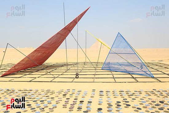 فنانون من مختلف دول العالم يضعون أعمالهم التشكيلية أمام الأهرامات.. صور