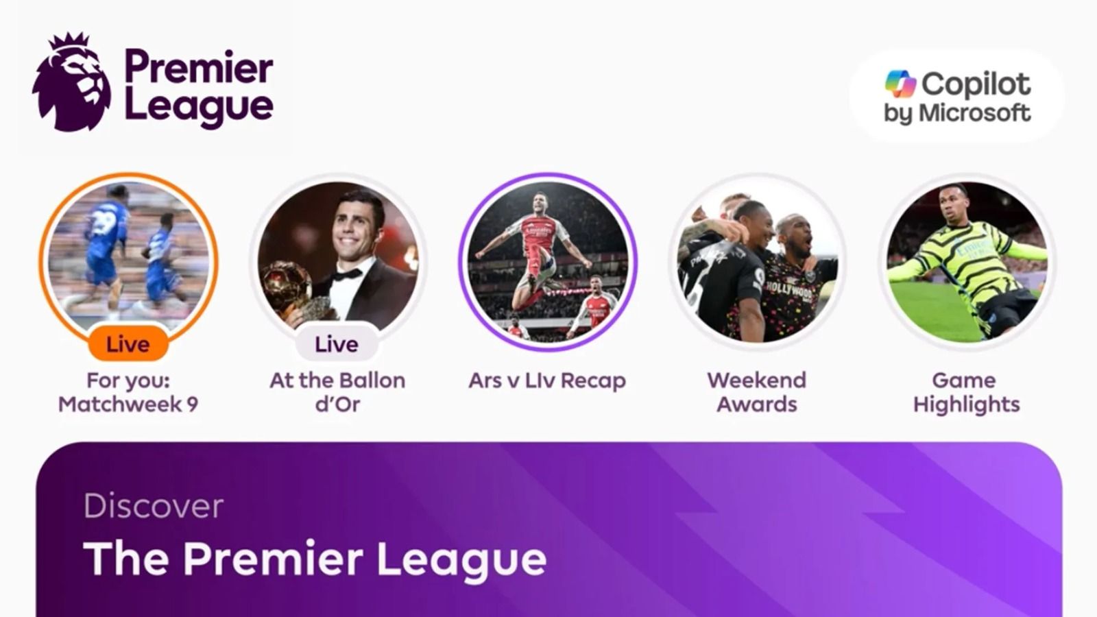 - بموجب الاتفاق، سيتم دمج روبوت الدردشة بالذكاء الاصطناعي "كوبايلوت" داخل تطبيق الدوري الإنجليزي، ليتيح للمشجعين الوصول إلى أكثر من 300 ألف مقال و9 آلاف مقطع فيديو وبيانات تفصيلية تغطي تاريخ البطولة منذ تأسيسها عام 1992.