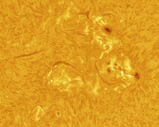 الطبقة من الشمس التي تظهر من خلال هذا التلسكوب الشمسي، وتظهر في الصورة هي الطبقة اللونية (Chromosphere)، وهي تقع فوق الطبقة الضوئية (Photosphere) التي نراها بالعين المجردة والتي تظهر من خلال التلسكوبات العادية.