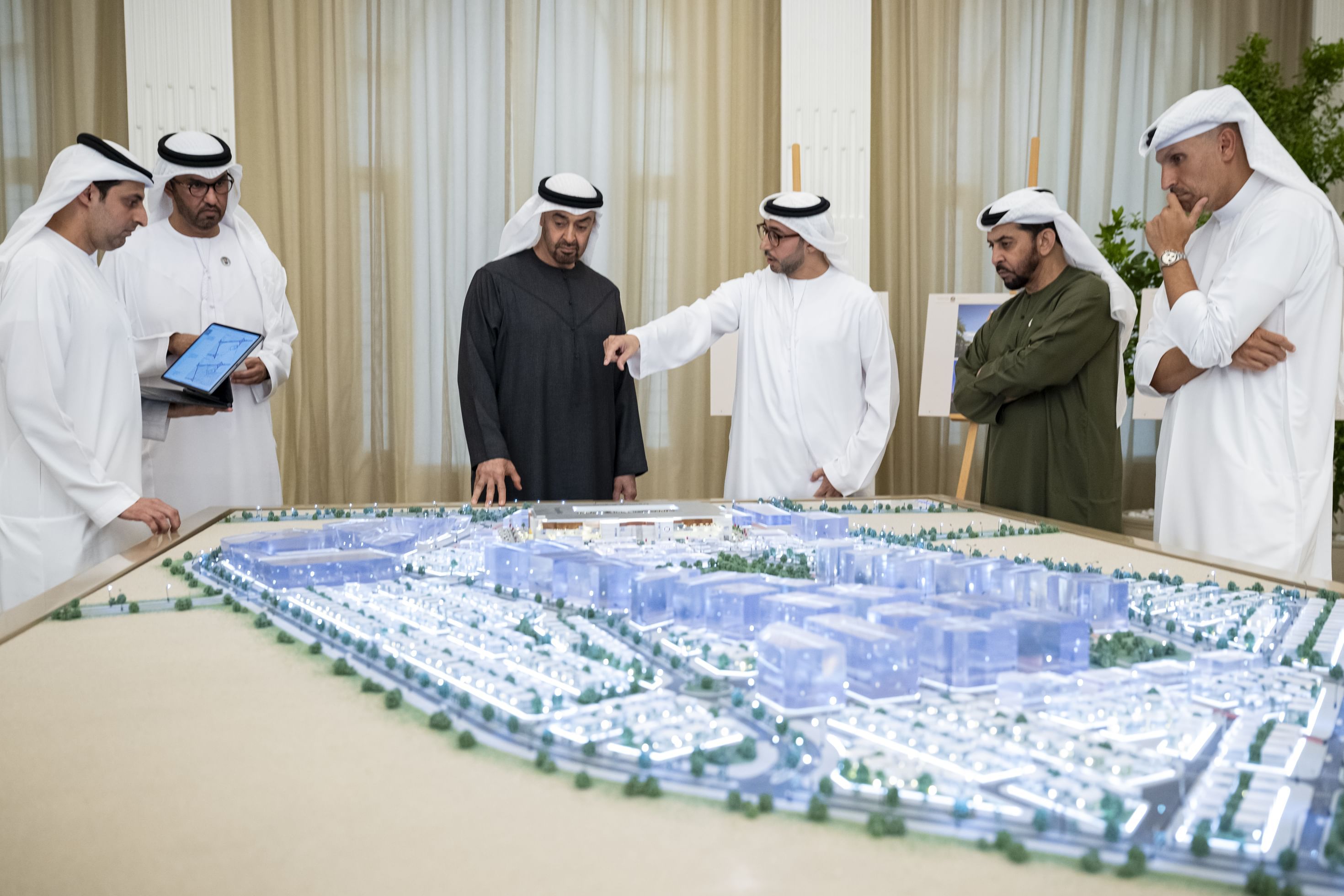 حضر عرض المشروع في مجلس قصر البحر.. سمو الشيخ حمدان بن زايد آل نهيان ممثل الحاكم في منطقة الظفرة والدكتور سلطان بن أحمد الجابر، الصناعة والتكنولوجيا المتقدمة والدكتور أحمد مبارك المزروعي رئيس مكتب رئيس الدولة للشؤون الإستراتيجية رئيس مكتب أبوظبي التنفيذي وخلدون خليفة المبارك رئيس جهاز الشؤون التنفيذية وعدد من كبار المسؤولين.