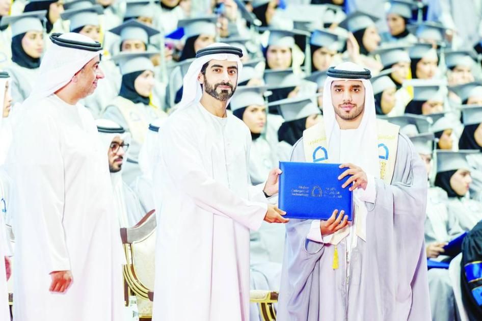 من جانبه ألقى الخريج عمر محمود الجوهري، من تخصص علوم الكمبيوتر والمعلومات، كلمة قدم فيها التقدير والعرفان إلى القيادة الرشيدة لمنحها شباب الإمارات أفضل الفرص وكامل الدعم والتشجيع مما مكّنهم من الانطلاق بكل جاهزية نحو المستقبل.