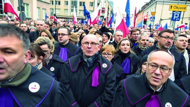 • مشكلات بولندا مع سيادة القانون تعود إلى استيلاء حزب القانون والعدالة على المجلس الوطني للقضاء، سياسياً، عام 2018.