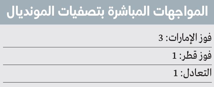 يطرق المنتخب الوطني، اليوم، أبواب التاريخ في مواجهته أمام مضيفه المنتخب القطري في ختام الملحق الآسيوي المؤهل إلى مونديال 2026، في مباراة يستند خلالها «الأبيض» إلى التفوق التاريخي الذي حققه سابقاً في المواجهات الخمس التي جمعت المنتخبين في تصفيات كأس العالم. ويمتلك «الأبيض» أفضلية تاريخية في المواجهات المباشرة ضمن التصفيات المونديالية، بعدما حقق «الأبيض» ثلاثة انتصارات، مقابل فوز وحيد لقطر وتعادل واحد، أحرز خلالها لاعبو الإمارات 11 هدفاً، مقابل خمسة أهداف فقط لـ«العنابي».