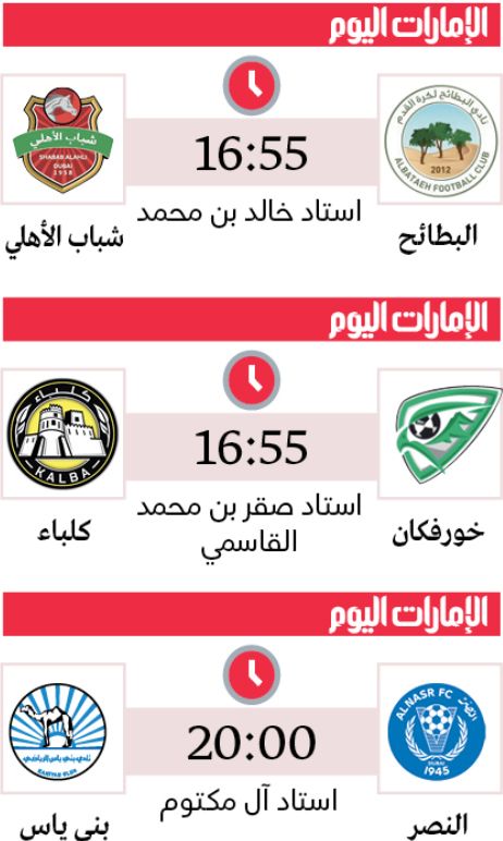في المقابل، يسعى كلباء لتكرار تفوقه وتحقيق فوزه الثاني في «الديربي» خلال شهر واحد، مستفيداً من حالة الاستقرار الفني التي يعيشها الفريق.