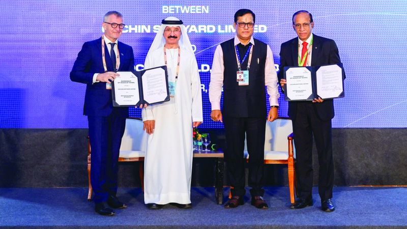 وأفاد بيان صادر أمس، بأن الرئيس التنفيذي لشركة الأحواض الجافة العالمية، القبطان الدكتور رادو أنتولوفيتش، ورئيس مجلس الإدارة العضو المنتدب لشركة كوتشين لبناء السفن المحدودة، مادهو إس. نير، وقعا الاتفاقية، بحضور الموانئ والشحن والممرات المائية في الحكومة الهندية، شري سارباناندا سونوال، ورئيس مجلس الإدارة الرئيس التنفيذي لمجموعة موانئ دبي العالمية (دي بي ورلد)، سلطان أحمد بن سليم، وذلك خلال «أسبوع الملاحة البحرية في الهند 2025» المنعقد في مدينة مومباي.