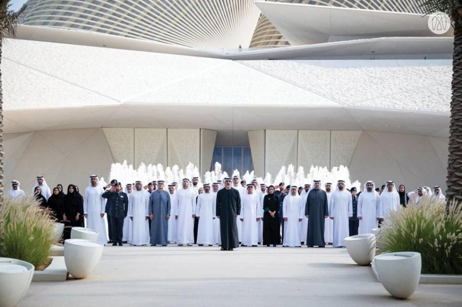 رفع سمو الشيخ خالد بن محمد بن زايد آل نهيان، ولي عهد أبوظبي رئيس المجلس التنفيذي لإمارة أبوظبي، علم الإمارات، أمام متحف زايد الوطني، احتفاءً بيوم العلم، الذي يصادف الثالث نوفمبر من كل عام.