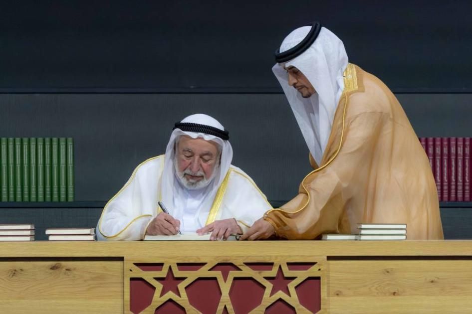 تفضل صاحب السموّ الشيخ الدكتور سلطان بن محمد القاسمي، بتوقيع نسخ من أحدث إصداراته وهو «مجمع التواريخ لشبه الجزيرة العربية وفارس أحداث في حوليات من عام 1622م إلى 1810م»، والذي يوثق بدقة لتلك المرحلة التاريخية المهمة في المنطقة من خلال حوادث في حوليات، ويأتي الإصدار في 33 مجلد باللغة العربية ومثلها باللغة الإنجليزية، وتحتوي على 1473 وثيقة، وتم وضعه أيضاً في إصبع ذاكرة.