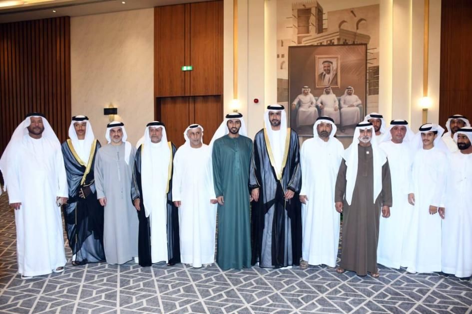حضر الشيخ نهيان بن مبارك آل نهيان وزير التسامح والتعايش، والشيخ عصام بن صقر القاسمي، المستشار بمكتب سمو حاكم الشارقة، والشيخ محمد بن سعود القاسمي رئيس دائرة المالية المركزية في الشارقة، والشيخ محمد بن حميد القاسمي، رئيس دائرة الإحصاء والتنمية المجتمعية في الشارقة، والشيخ راشد بن حميد النعيمي، رئيس دائرة البلدية والتخطيط في عجمان، حفل الاستقبال الذي أقامه يوم أمس، سالم عبيد سيف السويدي في مجلس الخوانيج بدبي، بمناسبة زفاف أخيه أحمد على كريمة المرحوم بطي بن بشر.