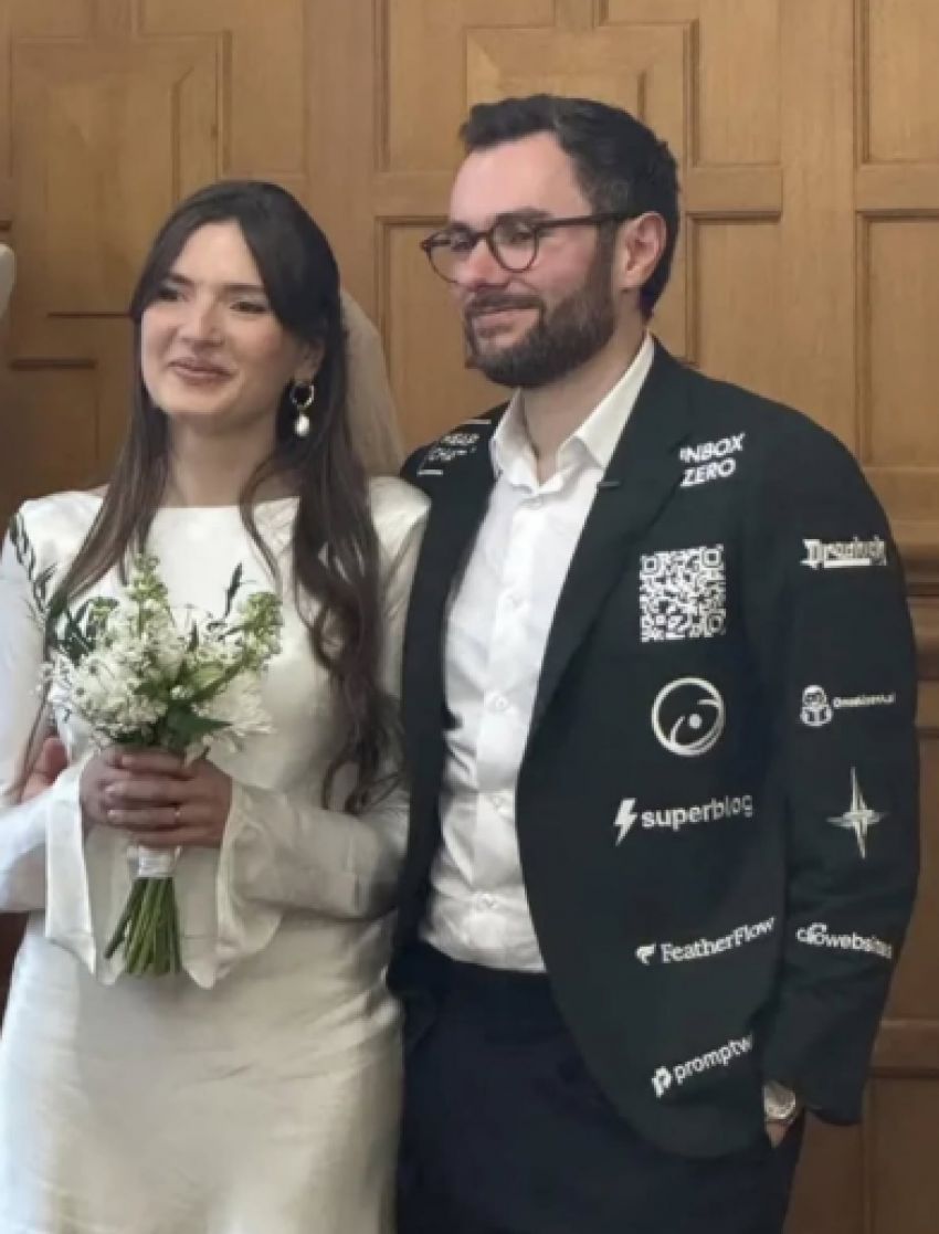 وفي 25 أكتوبر، ظهر العريس في حفل زفافه مرتدياً بدلة أنيقة تحمل شعارات 26 شركة ناشئة، وشارك صورة عبر الإنترنت معبراً عن امتنانه قائلاً: شكراً لكل الشركات التي جعلت زفافنا ممكناً.. لقد كان يوماً لا يُنسى.