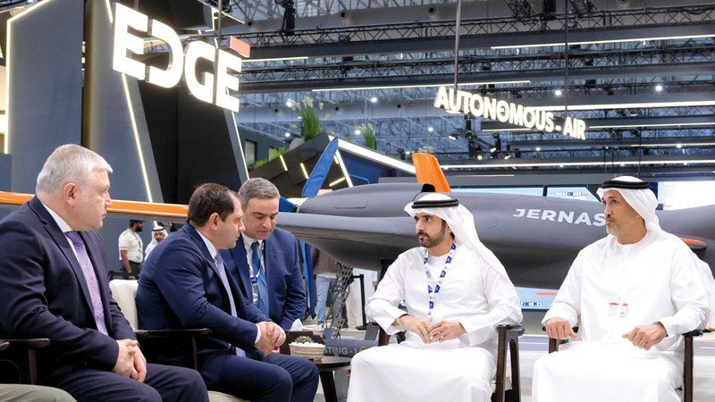 التقى سموّ الشيخ حمدان بن محمد بن راشد آل مكتوم، ولي عهد دبي نائب رئيس مجلس الوزراء وزير الدفاع، أمس، وزير الدفاع الأرميني، سورين بابيكان، على هامش فعاليات معرض دبي للطيران 2025، الذي انطلقت أعماله، أمس، بمشاركة أكثر من 1500 جهة عارضة من حول العالم، لرسم ملامح مستقبل الطيران والفضاء والدفاع.